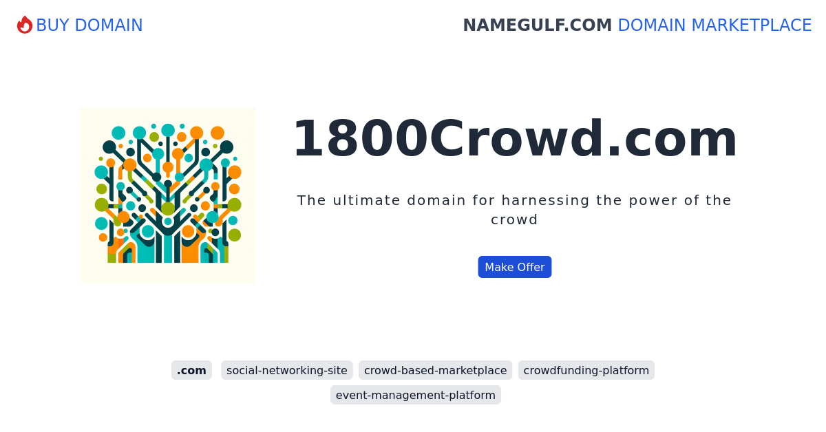 1800Crowd.com Domain for Sale 🌟 at NameGulf.com 1800Crowd.com The ultimate domain for harnessing the power of the crowd View Listing Domain for sale! 1800Crowd.com 1800crowd.com Ownership: Renewal: standard Harness the power of the crowd with 1800Crowd.com! This premium domain name offers a unique opportunity to establish your presence in the crowd-based marketplace. With a combination of expert SEO and copywriting skills, this domain is designed to attract high-quality traffic and enhance your online brand. Whether you are looking to launch a crowdfunding platform, a social networking site, or an event management platform, 1800Crowd.com has you covered. Its memorable and professional name immediately establishes credibility and trust with your target audience. By owning 1800Crowd.com, you gain instant recognition and authority in the crowd-based industry. Stand out from the competition and position yourself as a leader in the field. With its clear a...