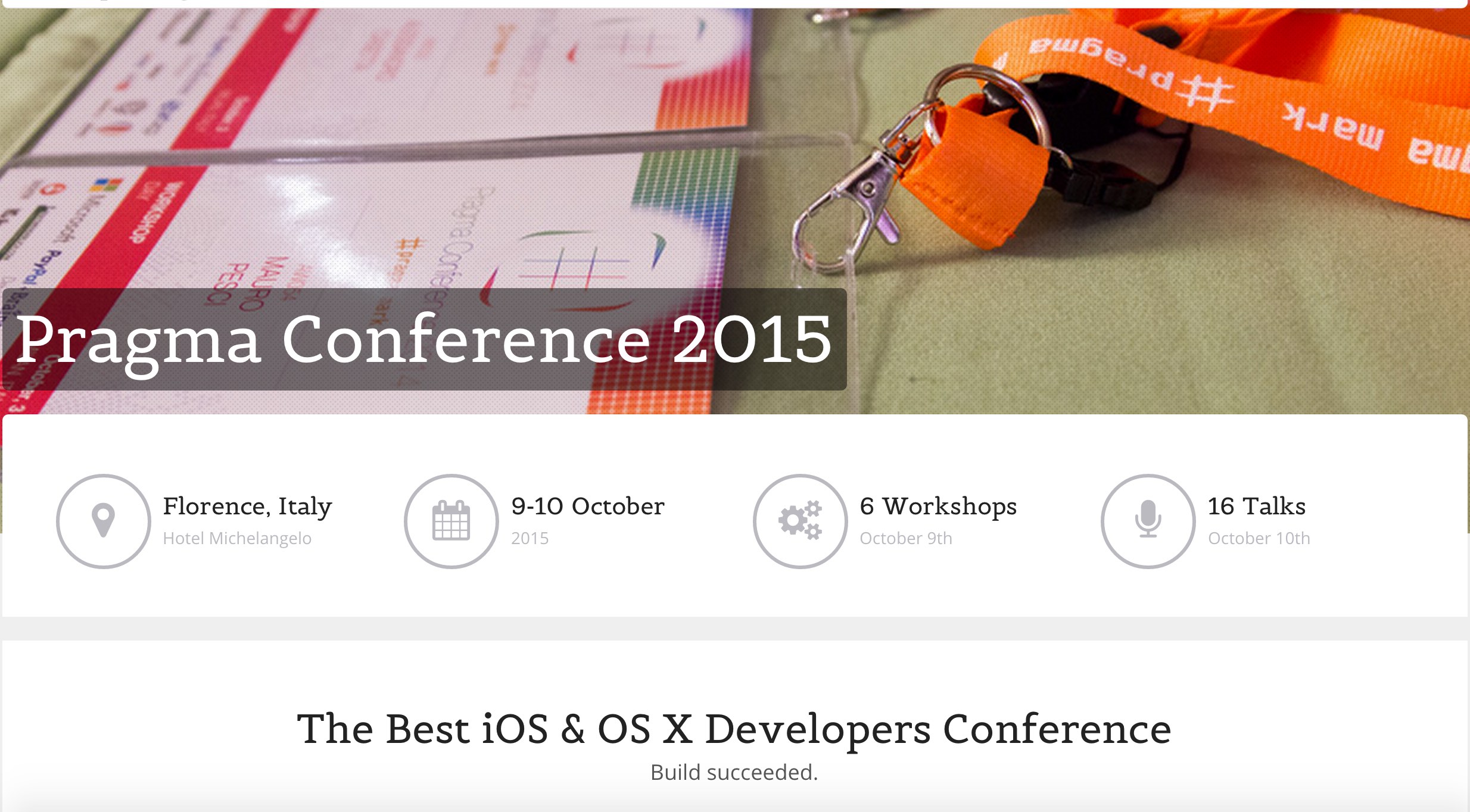 #Pragma Conference 2015 | The iOS & OS X Developers Conference Toggle navigation # pragmamark Home Workshops Speakers Videos Sponsors Schedule Location FAQ Subscribe Pragma Conference 2015 Florence, Italy Hotel Michelangelo 9‐10 October 2015 4 Workshops October 9th 16 Talks October 10th The iOS & OS X Developers Conference Build succeeded. #pragma mark community is proud to announce #Pragma Conference 2015: the only major event dedicated to iOS and OS X development in Italy. There will be two full days of awesome workshops and talks by renowned international speakers. Conference Day Saturday, October 10 from 9am to 19pm The Conference Day is dedicated to sessions and networking: 16 speakers on 2 tracks will talk about the most interesting and cutting-edge topics of the Apple world. It’s a unique opportunity to meet some of the most i...