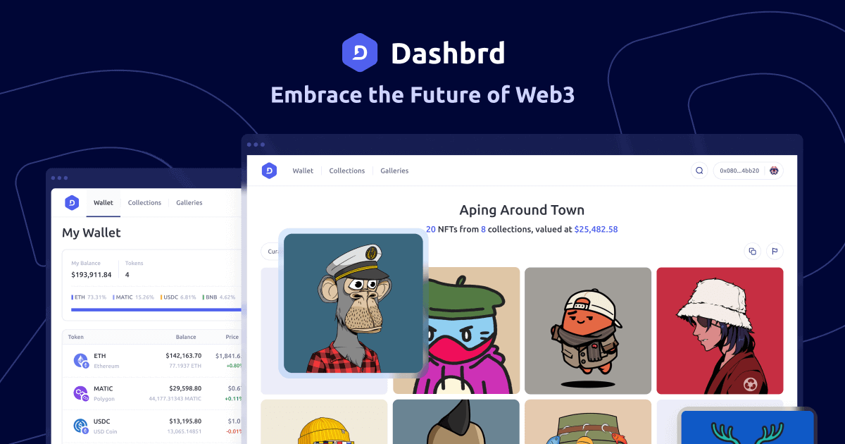 Simplify your Web3 journey with Dashbrd. Manage your portfolio of tokens, NFTs, and other digital collectibles across the Ethereum and Polygon blockchains.