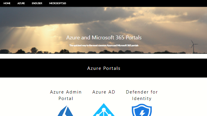 This website offers an overview of all commonly used Azure, Office and Microsoft 365 portals to quickly access the services you are hosting in the cloud. All combined on a single page.