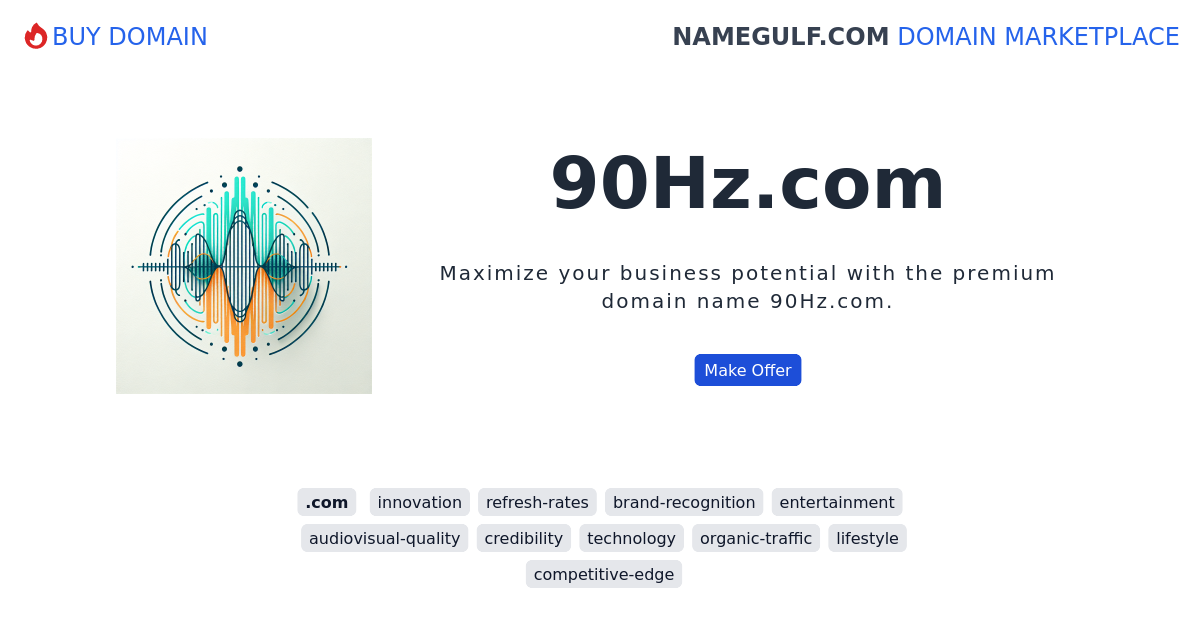 90Hz.com Domain for Sale 🌟 at NameGulf.com 90Hz.com Maximize your business potential with the premium domain name 90Hz.com. View Listing Domain for sale! 90Hz.com 90hz.com Ownership: Renewal: standard Unlock the power of the premium domain name 90Hz.com and add a touch of sophistication to your online presence. This domain offers a unique opportunity to stand out in the crowded digital landscape and capture the attention of your target audience. With its short and memorable name, 90Hz.com is perfect for businesses in the technology, entertainment, or lifestyle industries. Imagine the possibilities: a tech startup showcasing cutting-edge innovation, an entertainment website offering a curated selection of high-quality content, or a lifestyle blog providing valuable insights and recommendations. The potential is limitless. Building your brand on 90Hz.com will give you instant credibility and a competitive edge. Its distinctive and easy-to-remember name...