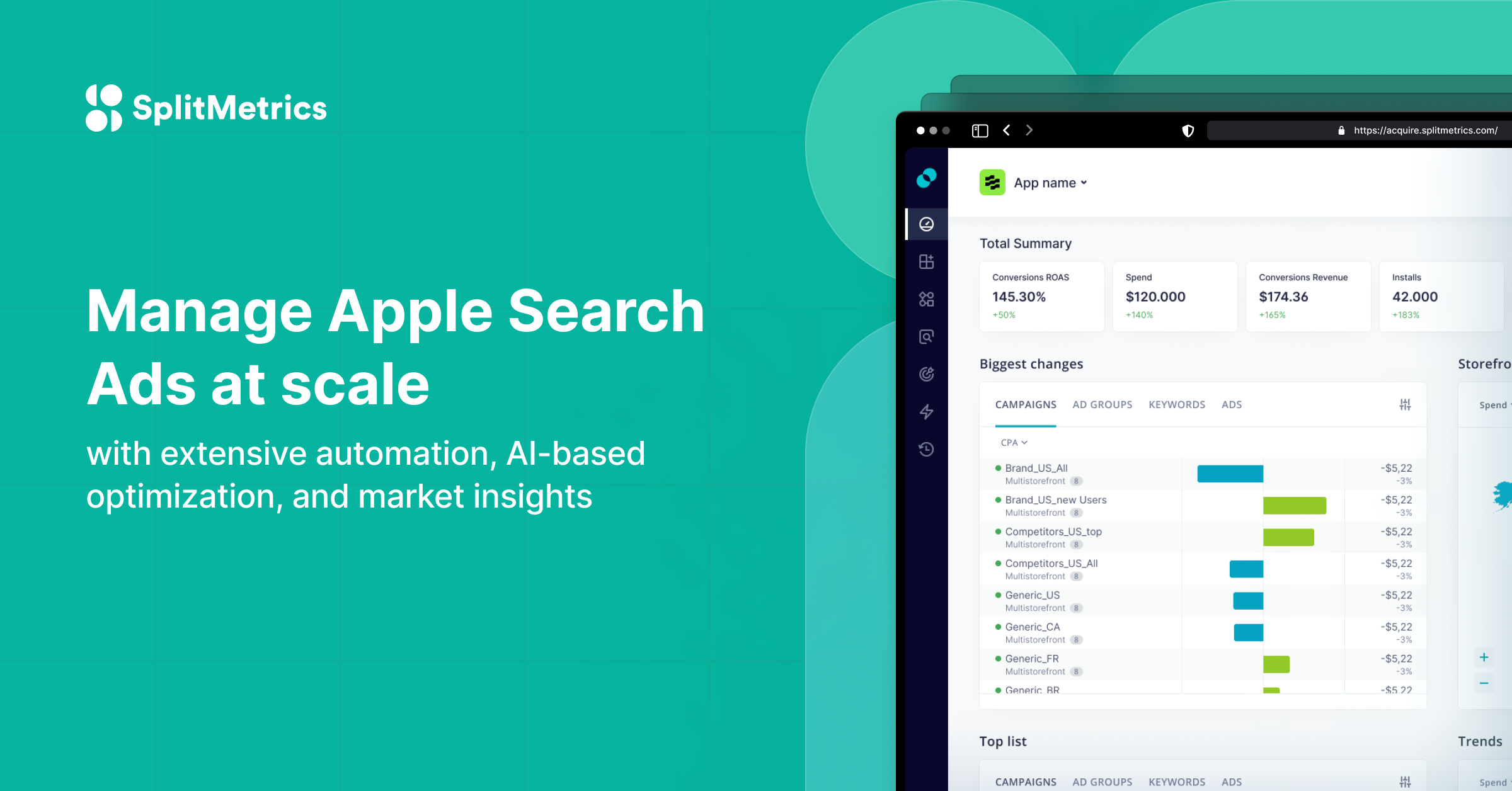 SplitMetrics Acquire ● Apple Search Ads Optimization & Automation Solution