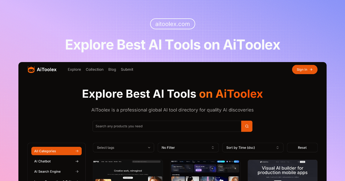 AiToolex is the best AI tools directory to explore cutting-edge AI tools. Quickly find the perfect AI tools to supercharge your productivity and efficiency.