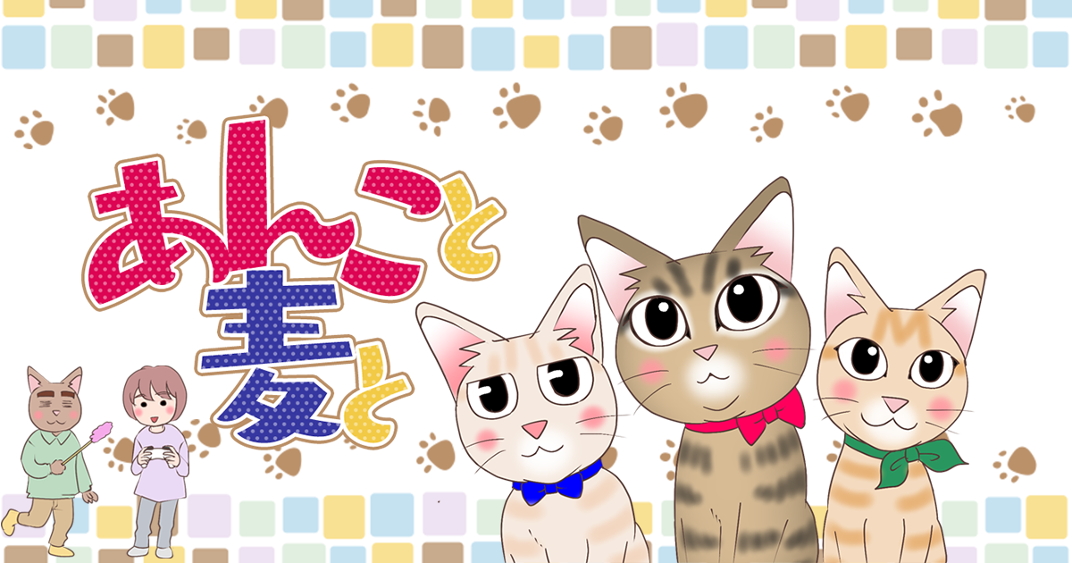 あんこ・麦・まる、元保護猫の3にゃんと母ちゃん父ちゃんの楽しい4コマまんが、人間の話、昭和の話もあります