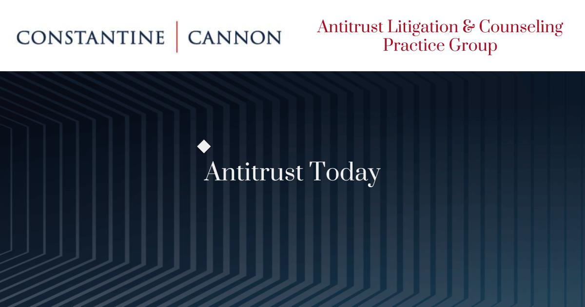 Antitrust Today Blog | Media Antitrust Lawyer | Constantine Cannon Constantine Cannon Search Practices Antitrust Litigation & Counseling Whistleblower Representation Commercial Litigation Compliance, Monitoring & Investigations E-Discovery Counseling Government Affairs Intellectual Property & Technology All Practices Attorneys News Firm News Firm Publications Antitrust Today Blog Whistleblower Insider Blog Podcasts C|C Payments Blog Offices New York Washington D.C. San Francisco All Offices About Us About Us Careers Diversity, Equity & Inclusion 25th Anniversary Contact Antitrust Menu Representative Cases Electronic Payments Healthcare & Pharmaceutical Antitrust High Tech/Media Transportation News Antitrust Today In the Press Insights and Analysis The Antitrust Week in Review C|C Payments Weekly News Update Payments Insights Home Practices Antitrust Litigation & Counseling Antitrus...