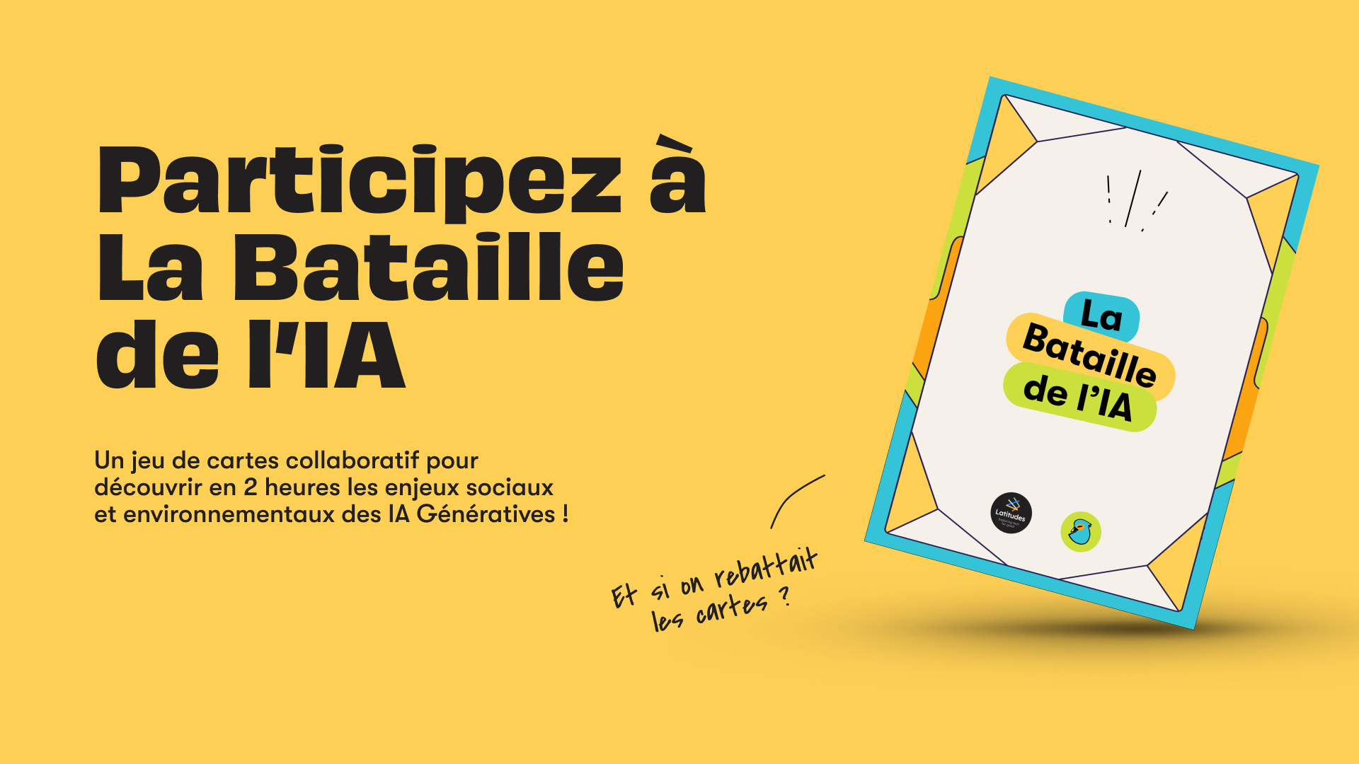 La Bataille de l'IA Demander une intervention La Bataille de l’IA ‣ 🎛 Control panel (This is hidden from your site) Content databases → 👥 Team database 📌 Case studies database 📒 Blog posts database 🤝 Careers database Site pages → Blocks Help center The team Case studies Blog Careers Pricing Using this template → Getting started Customizing La Bataille de l’IA Un jeu de cartes pour explorer les enjeux sociaux et environnementaux de l’IA Générative en 2h ! Demander une intervention Créée par 💡 Démythifier l’IA Générative et ses enjeux sociétaux En s’appuyant sur le rapport de Data for Good sur l’IA Générative, la Bataille de l’IA vous permet de découvrir de manière ludique les enjeux sociaux et environnementaux de l’IA ✨ Développer l’esprit critique grâce à la collaboration L’atelier est pensé pour générer la discussion par petits groupes de 5 personnes, une bonne manière de créer du lien entre participants et partici...
