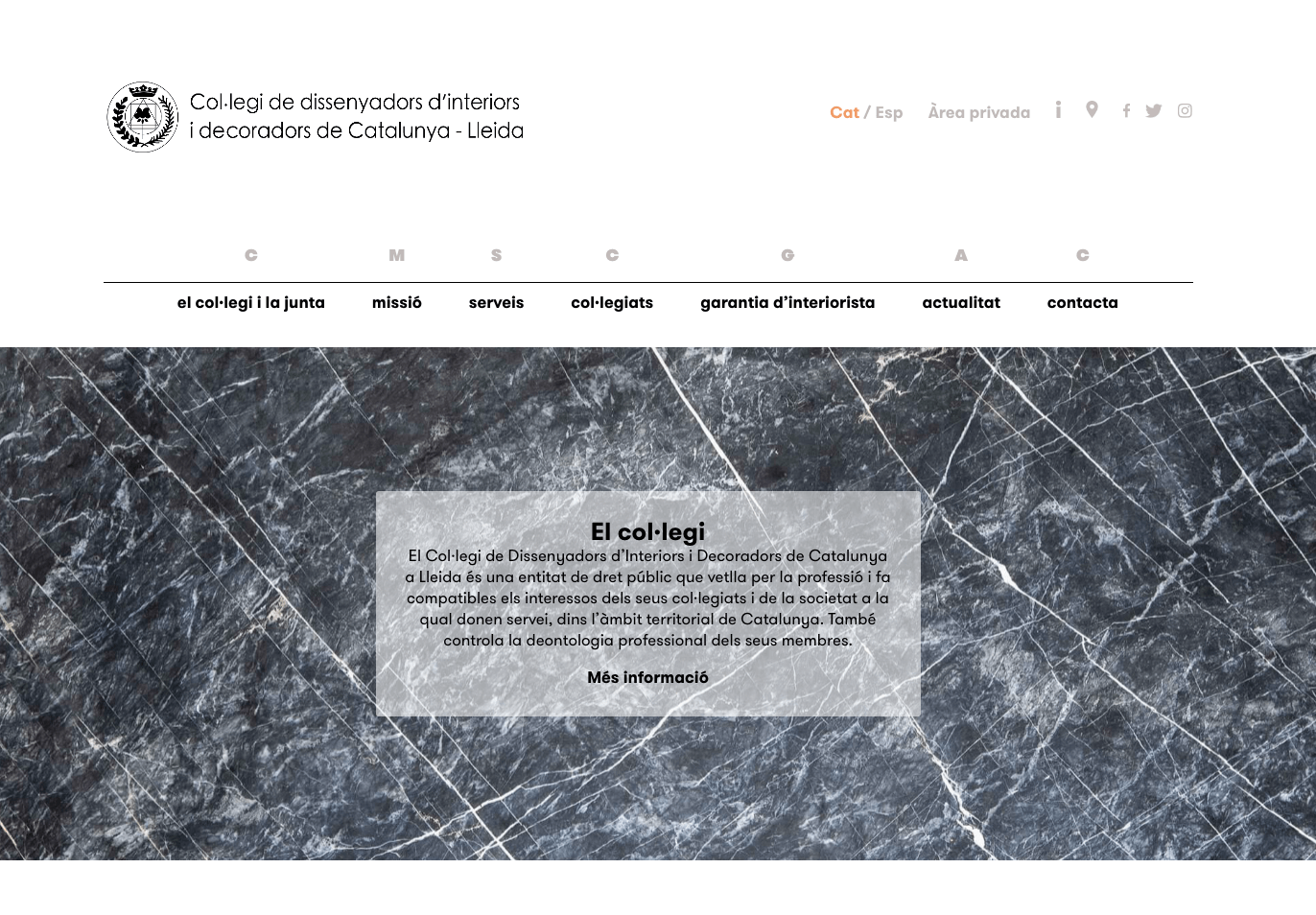 Col·legi de Dissenyadors d’Interiors i Decoradors de Catalunya a Lleida Cat Esp Àrea privada C el col·legi i la junta M missió S serveis C col·legiats G garantia d’interiorista A actualitat àrea privada C contacta Menú El col·legi El Col·legi de Dissenyadors d’Interiors i Decoradors de Catalunya a Lleida és una entitat de dret públic que vetlla per la professió i fa compatibles els interessos dels seus col·legiats i de la societat a la qual donen servei, dins l’àmbit territorial de Catalunya. També controla la deontologia professional dels seus membres. Més informació El col·legi El Col·legi de Dissenyadors d’Interiors i Decoradors de Catalunya a Lleida és una entitat de dret públic que vetlla per la professió i fa compatibles els interessos dels seus col·legiats i de la societat a la qual donen servei, dins l’àmbit territorial de Catalunya. També controla la deontologia professional dels seus membres. Més informació El col·legi El Col·legi de Di...