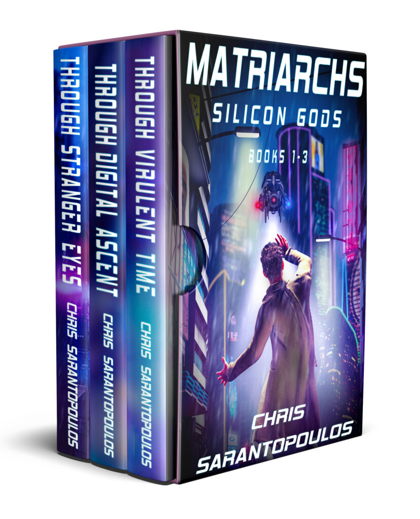LATEST FROM CHRIS SARANTOPOULOS Announcing Matriarchs – Silicon Gods boxed set When giants fight, ants better stay away. The corporate conglomerate, also known as the Matriarchs, claims it brought sta