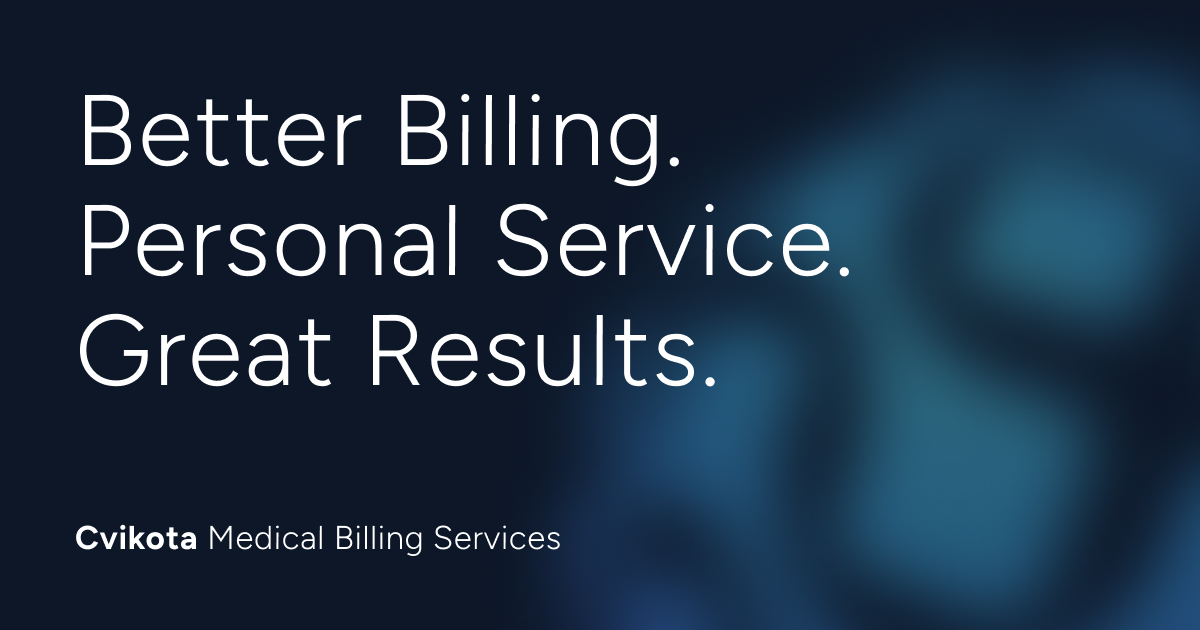 Cvikota MBS | Medical Billing Service Get a free practice analysis! About Services Resources LOG IN Contact Us Your Partner for Medical Billing Results Better Billing. Personal Service. Great Results. Contact Us Over 50 years of experience We are a USA-based medical billing company working with independent physicians who want outstanding results in their accounts receivables. Through five decades we have carefully developed our best practices to provide attentive, boutique-level medical billing services while offering outstanding value. As a proven provider of medical billing services and comprehensive practice management, we bring our unique experience and proven medical billing processes to all of our business relationships. Independent physicians, hospitals, and office based practices alike rely on us as their trusted comprehensive revenue cycle team. ABOUT CVIKOTA MBS committed to helping you thrive Hiring a professional medical billing service is a big step, b...