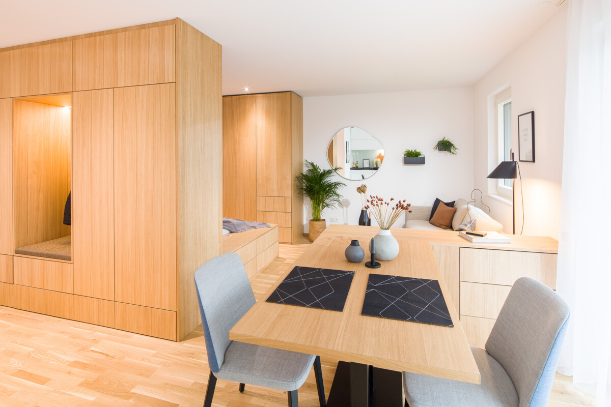 Micro Living ist Lebensqualität. Die Apartments von Rhomberg DAVID überzeugen durch zentrale Standorte, Komplettmöblierung, zeitloses Design & hochwertige Materialien.