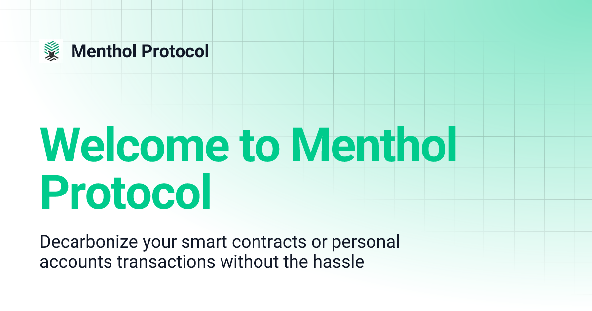 Welcome to Menthol Protocol | Menthol Protocol Menthol Protocol More Search Ctrl + K 👋 Welcome to Menthol Protocol Decarbonize your smart contracts or personal accounts transactions without the hassle Next Why Use Menthol Protocol? Last updated 2 years ago Use these docs to learn more about Menthol Protocol and explore guides. 🧐 What is Menthol Protocol? Menthol Protocol is a no-loss , decentralized automated sustainability protocol that will automatically power user or dApp transactions with verified renewable energy and carbon credits from around the world. Users can also offset their off-chain emissions and/or energy consumption to make the world even cooler! Can't let go of your crypto bags? With Menthol, you get all the benefits of automating your sustainability goals for any externally owned account or smart contract without paying a dime for either the service or the green assets by using CoolSave . Even without using CoolSave, it would...