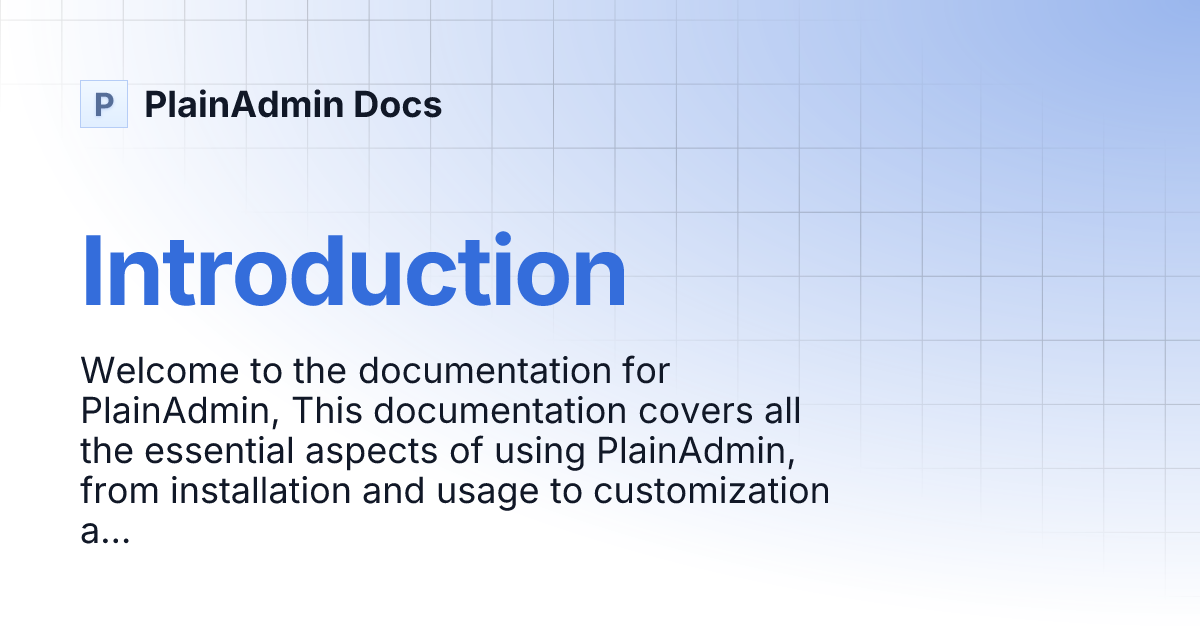 Introduction | PlainAdmin Docs