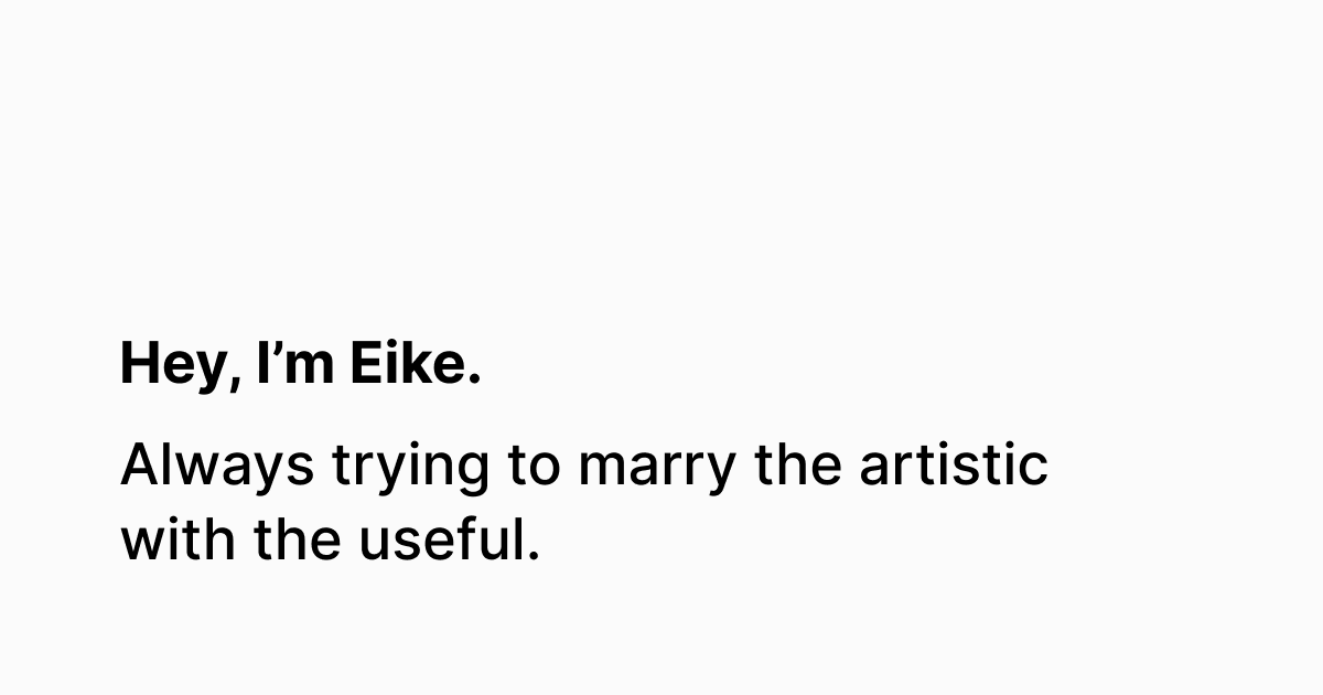 Eike Drescher - Product Designer About Work Berlin, Germany - Everything around you was made up by people. Intro Bento Trade Republic Magnets Wire Splash Splash Hey, I'm Eike. I care about software that stands for something, that has an opinion, that chooses a side. Software that makes you feel something - feel part of something. Software that tells you something about the people who created it. Designed Bento & Trade Republic. Copy my Email COPIED My Bento Thoughts & Ideas Exploring UI Patterns for visionOS Ideas for how the gaze-based input method of visionOS could communicate fundamental interactions like dragging or entering text. Getting rid of the browser A calendar for makers Bento Acquired 2022 – 2023 Now Sélim Benayat Mugeeb Hassan Valerie Krämer Thilo Konzok akihito Jace Jonas Maaløe David Noé Ralph Theodory I joined Selim and Mugeeb at CreatorSpace, which was the name at the time, to help creators show ...