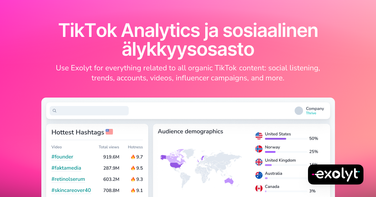 Explore Exolyt a comprehensive TikTok analytics suite for actionable social intelligence insights into your audience, industry & competitors. Get started for free now!