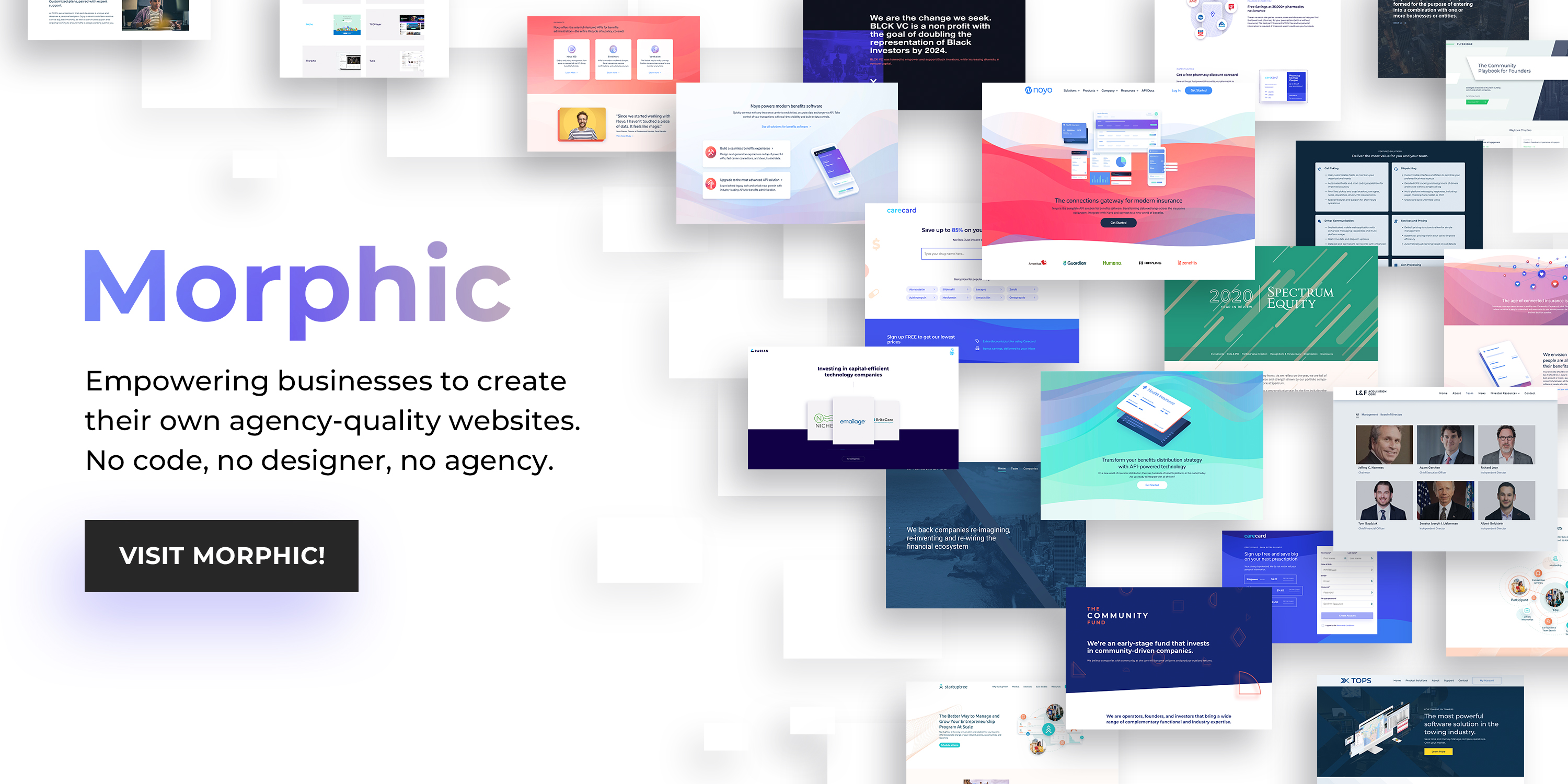Morphic The first platform that designs for you. Top-quality websites and marketing materials created with AI-driven design in just seconds. No-code. No designers. Get Started Democratizing access to top-quality creative agency services and expertise Morphic has productized and automated the design thinking, creative problem solving and bespoke recommendations of award-winning digital agencies. Replaces expensive creative agencies and design experts Uses proven strategies and process to automate tailored design solutions Creates bespoke brand style guide and extends brand expression Maintains brand and design consistency across all materials Provides ongoing recommendations, support and improvements Why Morphic? Morphic helps save money, decrease time and increase quality Save Time Reducing a 3 month process down to minutes. Eliminate the back and forth with agencies and designers Lightning fast speed to update content and create new pages Save Mo...