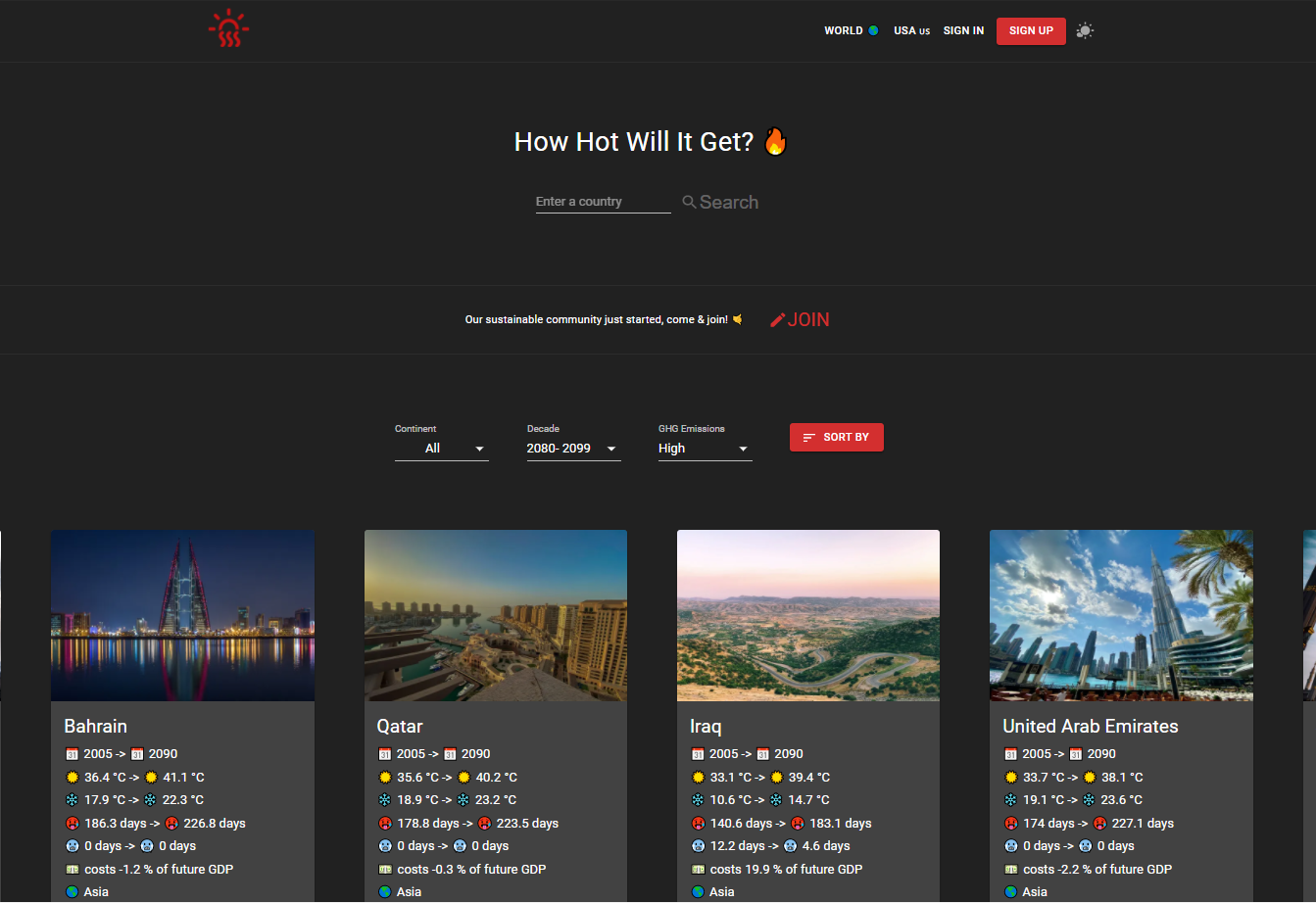 How Hot Will It Get? gives an overview of future climate scenarios of each country worldwide. Explore countries based on costs related to climate change, on hottest temperatures, hazards and view rele