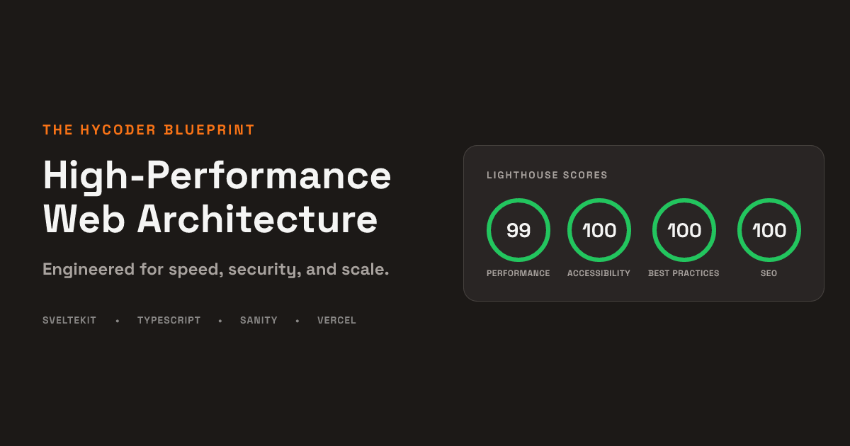HyCoder architects high-performance digital assets using SvelteKit, Sanity, and Python. We deliver speed, security, and intelligent automation for business.