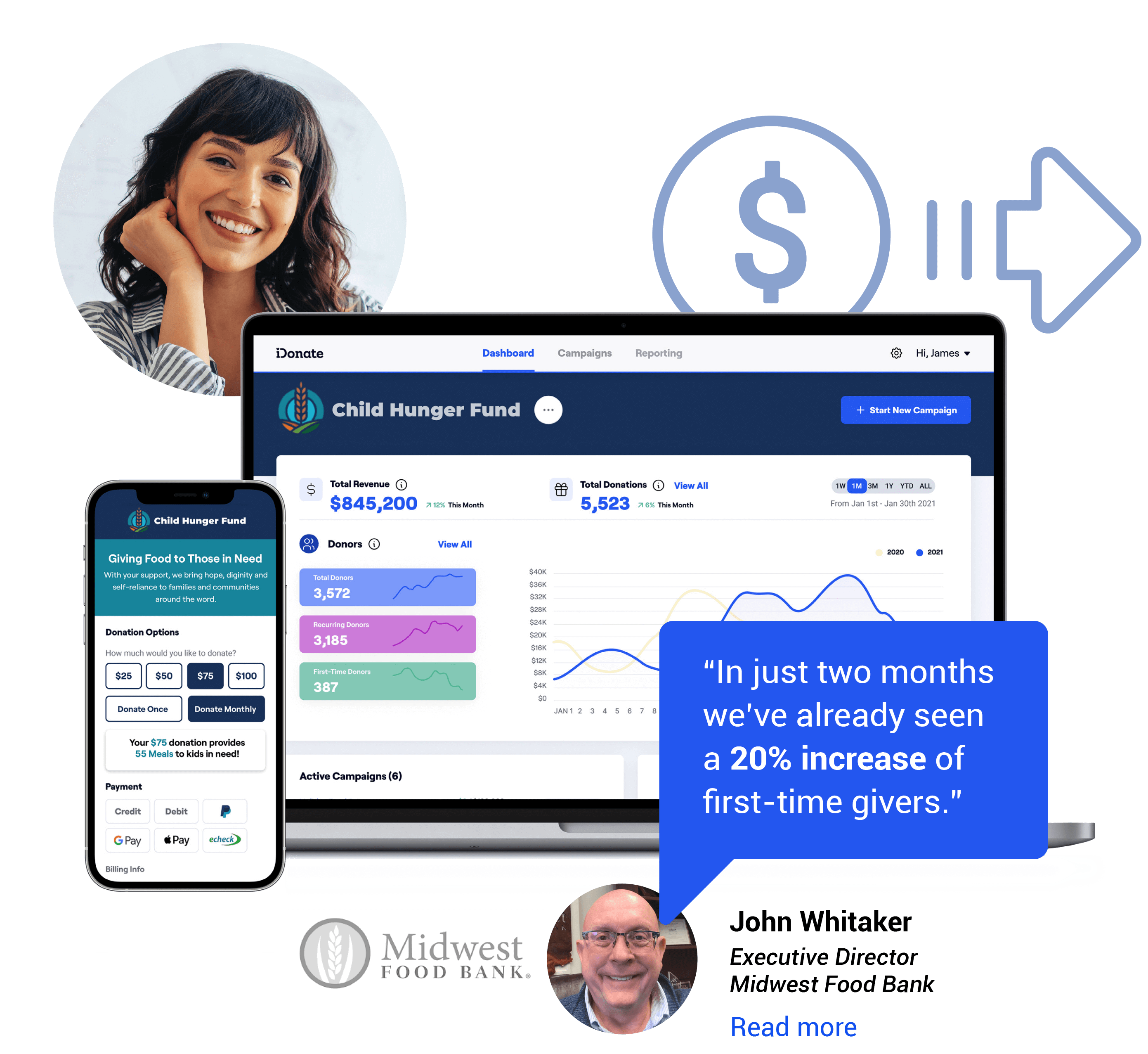 iDonate's Donor-First Fundraising platform & optimization services simplify digital fundraising so your nonprofit can grow at 2x the industry benchmark.