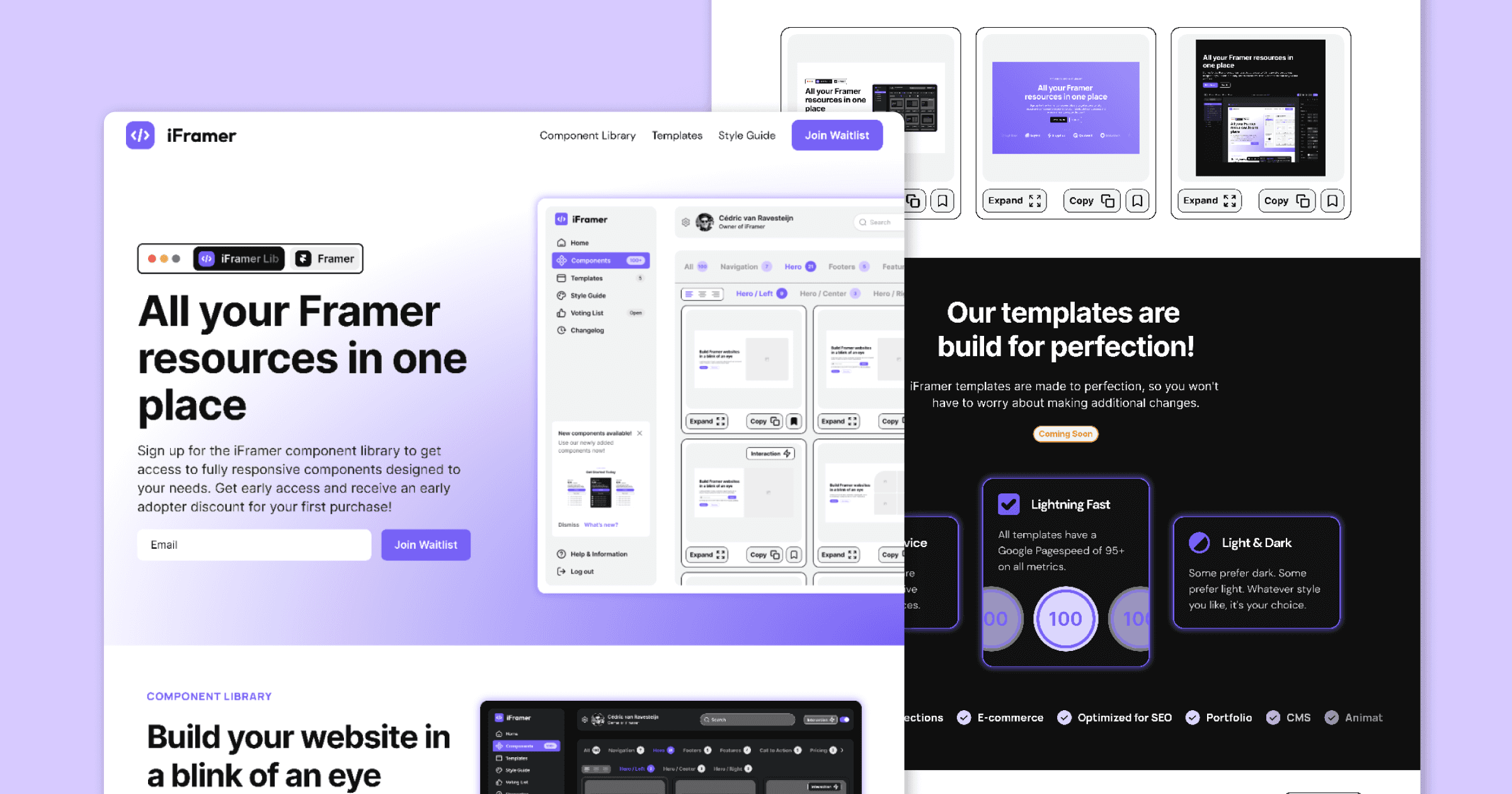 Component Library Build for Framer - iFramer iFramer Component Library Component Library Templates Templates Style Guide Style Guide Join Waitlist iFramer Join Waitlist iFramer Component Library Component Library Templates Templates Style Guide Style Guide Join Waitlist iFramer Lib Framer All your Framer resources in one place Sign up for the iFramer component library to get access to fully responsive components designed to your needs. Get early access and receive an early adopter discount for your first purchase! Component Library Build your website in a blink of an eye Build your website in a blink of an eye with the iFramer component library. 100+ Components Easily copy & paste Fully responsive Build with the iFramer Style Guide Coming Soon Optimized for Desktop! Try it yourself! Simply copy one of the hero components below. Paste them into your Framer project. Voila, magic happens! Expand clipboard button Copy...
