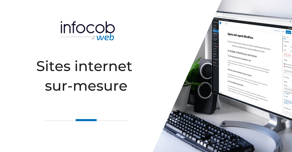 Agence spécialisée WordPress | Infocob Web L’agence L’agence Infocob #web Le groupe INFOCOB Solutions Créer votre site Création de sites web Site WordPress Site vitrine Site catalogue Site e-commerce Modèles et thèmes WordPress Outils web Création d’espace client Identification des visiteurs Outils statistiques du site web Développement web sur mesure Modules et plugins Plugin – Gestion des formulaires Plugin – Gestion des abonnements email Plugin – Gestion des produits Module – Gestion des salles et événements Module – Recrutement Promouvoir votre site Référencement naturel SEO Référencement payant Google Ads Maintenir votre site Hébergement et noms de domaine Maintenance site web Formations Assistance et support Réalisations Ressources Guides Blog Contact Assistance Assistance Espace client Agence spécialisée WordPress Créateur de solutions digitales sur-mesure pour Depuis 1997 , ...