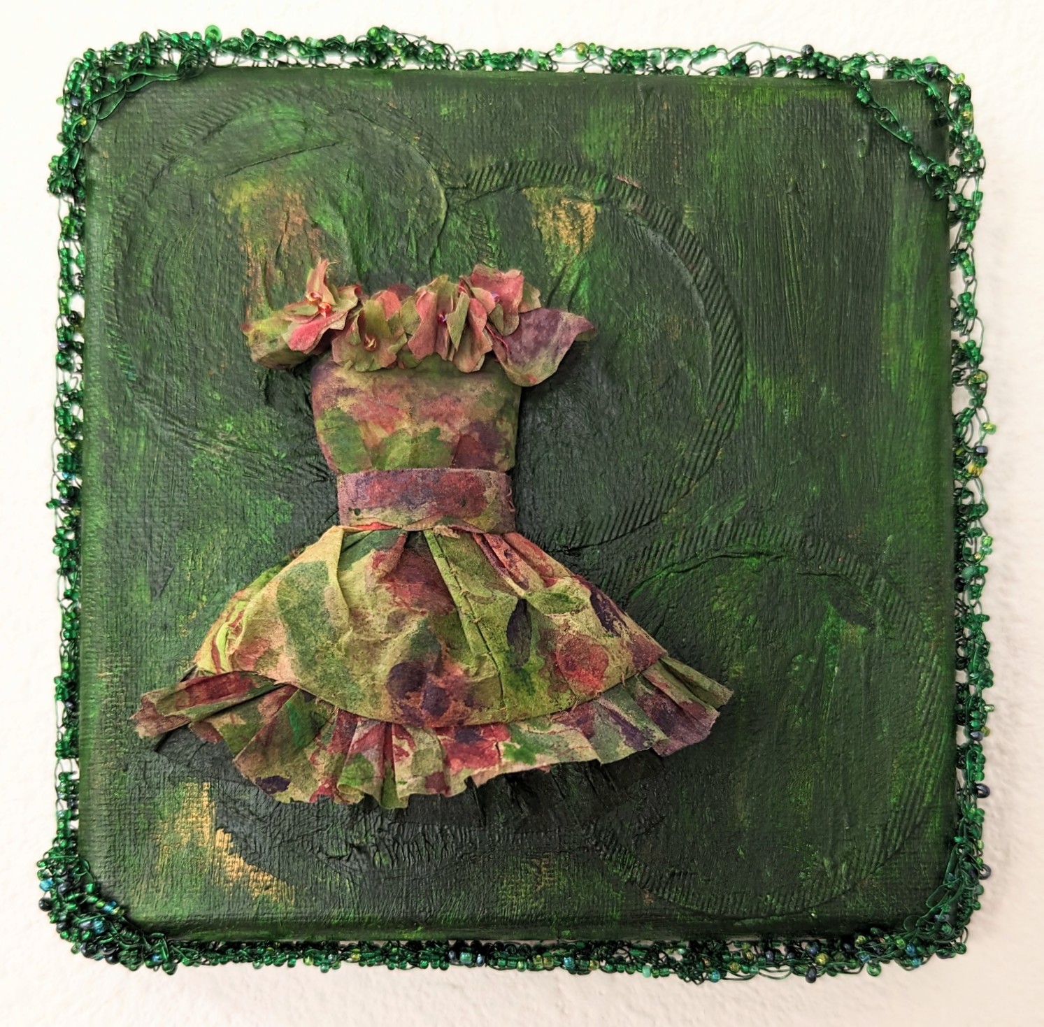 Menu Skip to content Home Artwork Dresses, Reflections of Past & Present Wildish Spirits Commissions and Landscpes Collaborations Photography Gallery Portfolio About Bio and Artist Statement CV and Bibliography Articles Contact Blog Community Manga Janell Mithani Art Ruffled, Recycled tea bags, acrylic, watercolor, wire, glass beads on canvas 6.25″ x 6.25″ FLAME, acrylic on gallery wrapped canvas, 24″ x 36,” ©Janell Mithani 2024 VIOLA, 24″ x 36″ acrylic on canvas, Musical Mermaid Series. ©Janell Mithani 2024 FERN, Botanically printed recycled tea bag, thread, wire SIREN, Musical Mermaid series, acrylic on canvas, 14″ x 11″ ©Janell Mithani 2024 FANCY, Acrylic paint, recycled tea bags on canvas. 6″ x 6″ ©Janell Mithani 2024 RIVER, acrylic on canvas, 11″ x 14,” ©Janell Mithani 2024 RUTH, Acrylic, ink, gesso, recycled tea bag on canvas, 4″ x 4″ Greetings! Welcome to my website and thank you for taking the time to visit! I am a multid...
