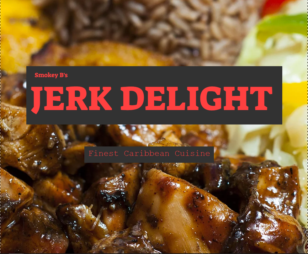 Carribean Cooking | Jerk Delight | London top of page Home Rice and Peas Sunday Menu Who We Are Instagram Catering Contact Smokey B's JERK DELIGHT Finest Caribbean Cuisine Treat Yourself Check Our Menu >>> RICE AND PEAS SUNDAY Every Sunday, fresh Caribbean Cuisine to your door View our Menu below to Pre-Order Locations Menu link Smokey B, the founder of Jerk Delight has been surrounded by Caribbean culture all his life. His goal? To spread the love and passion of the finest cuisine known to man. Who We Are Who We Are Instagram Catering Interested in Our Special Catering Services? Not only do we provide the perfect lunch time options, we also can cater for private events. Fill out the form below and we'll be in touch! Send Thanks for submitting! Catering Contact Contact jerkdelight@gmail.com 07960 075436 For Any Question, leave your details > Thanks for submitting! bottom of page