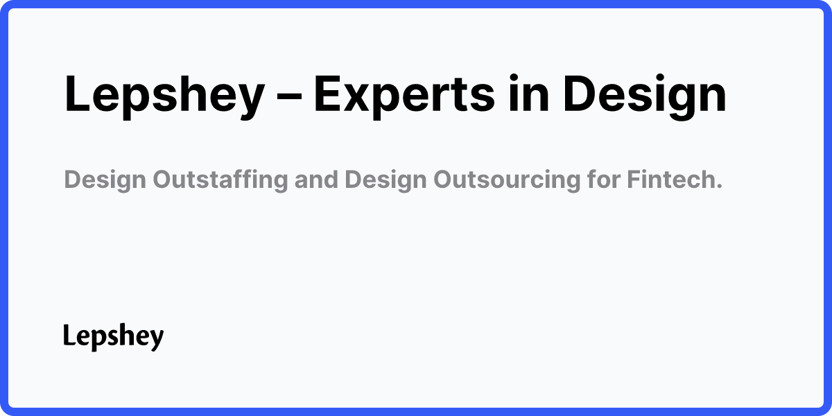Lepshey – Experts in Design Work Services About Clients EN RU Hire our team Lepshey Experts in Design Your reliable and trustworthy design partner Design Outstaffing and Design Outsourcing for Fintech companies, and not only… Website design Development Edusystems UI/UX Website design PesoRedee UI/UX App HQ VPN All cases Product design We transform ideas into intuitive and user-centric products that solve problems and drive results SaaS design UI/UX design Mobile app design UI Kit & design systems Web design We design websites that not only look stunning, but also convert visitors into loyal customers Website & Landing page designs Design of illustrations & icons Web app design UI Kit & design systems Micro animation Marketing design Our marketing design services help you create compelling marketing materials that grab attention, tell your brand story, and achieve your marketing goals Pitch deck design Logo Branding S...