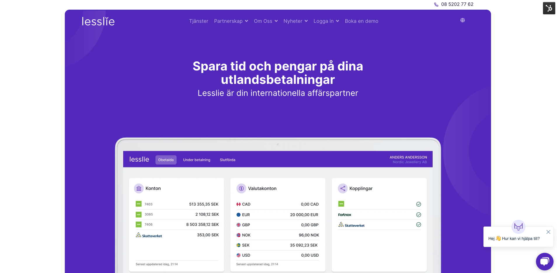 Spara tid och pengar på dina utlandsbetalningar Skip to the main content. 08 5202 77 62 Tjänster Filbetalningar Partnerskap Integrationer Om Oss Kultur Karriär Kontakta oss Nyheter Kundcase Press Logga in Lesslie PAY Lesslie PAY - Portal Boka en demo Svenska English Toggle Menu Svenska English Toggle Menu Tjänster Toggle Menu Filbetalningar Partnerskap Integrationer Om Oss Toggle Menu Kultur Karriär Kontakta oss Nyheter Toggle Menu Kundcase Press Logga in Toggle Menu Lesslie P...