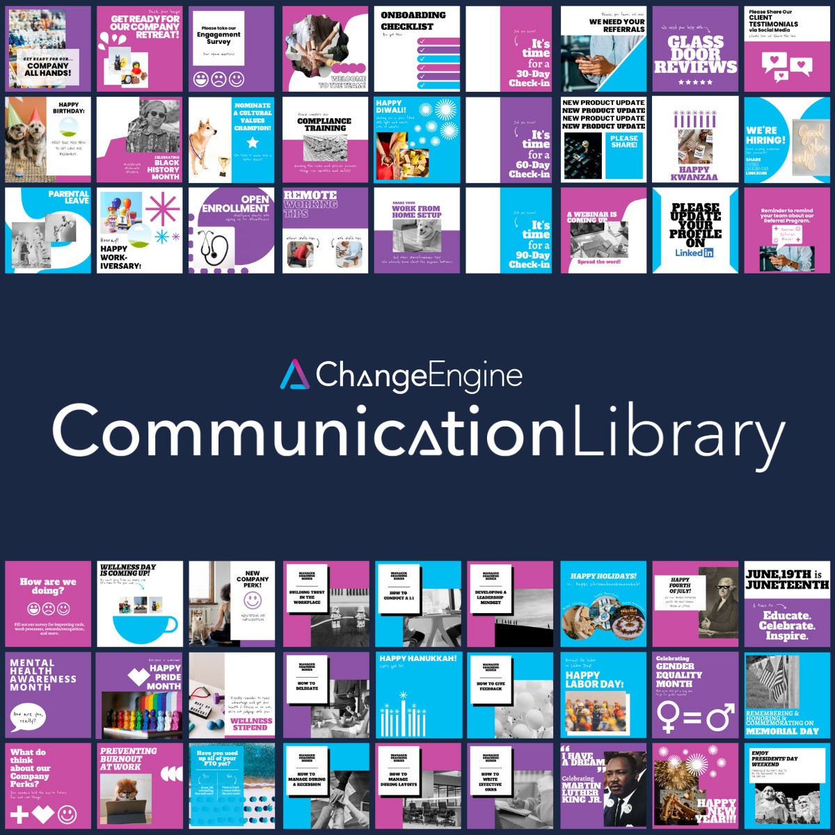 The ChangeEngine CommunicationLibrary. Create well written, on-brand employee communications in under 30 seconds.