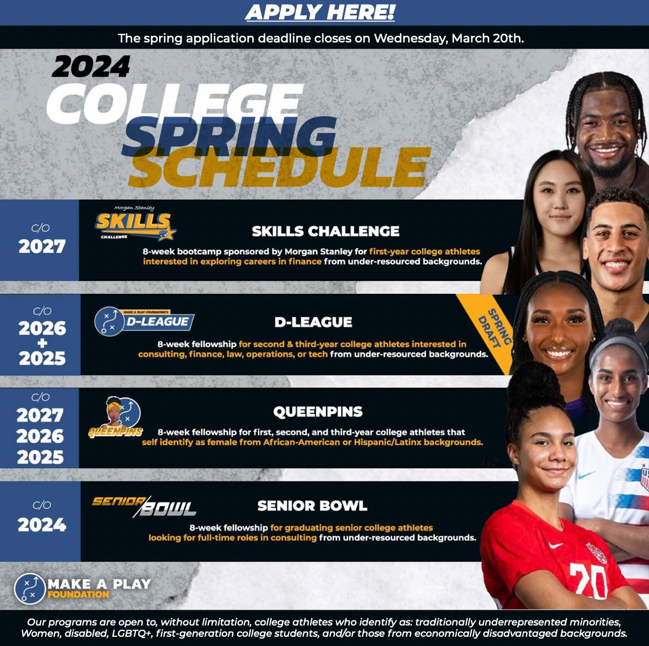 We prepare under-resourced athletes for professional success at leading companies!