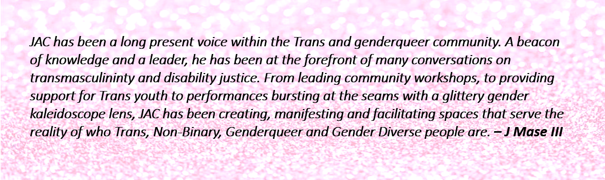 JAC Stringer – Radical trans activist, educator, social worker, and artist. Skip to content JAC Stringer Radical trans activist, educator, social worker, and artist. CONTACT: (612) 517-1598 jac@midwestgenderqueer.com About Public Speaking Professional Training Therapy Blog Archive Contact Public Speaking Professional Trainings Social Work and Therapy Facebook Instagram Theme by Out the Box Loading Comments... Write a Comment... Email Name Website