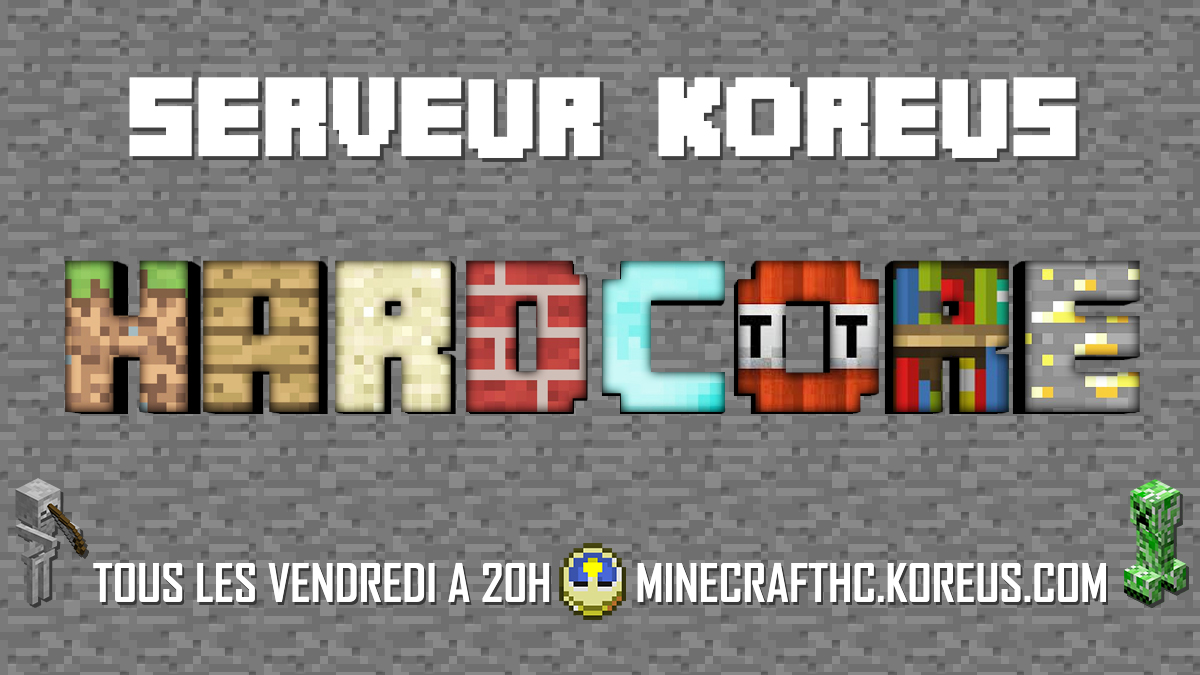 Jouez à Minecraft sur des serveurs mis à disposition par Koreus. Le mode Hardcore est publique.