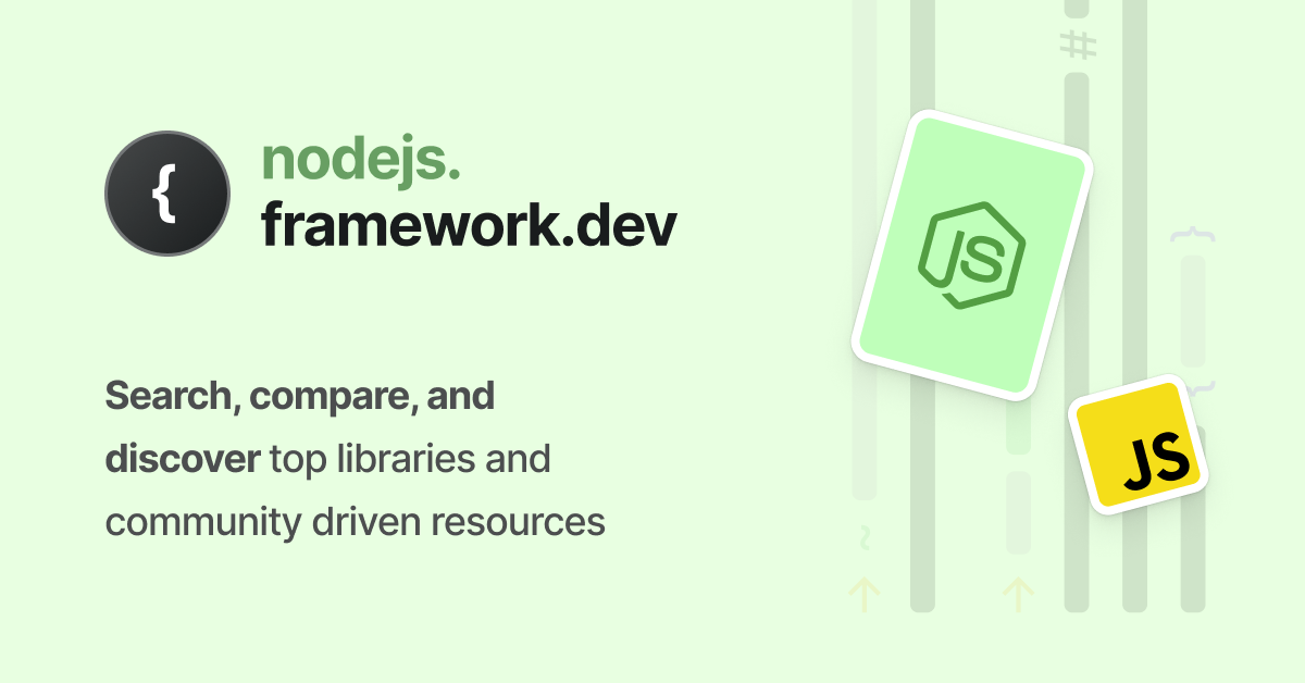 Featured Resources | nodejs.framework.dev Skip to Content Libraries Frameworks Utilities Testing Auth Data Fetching Tools Courses Communities Meetups Conferences Podcasts Books Blogs Submit a PR Search Search Search, compare, and discover top Nodejs libraries and community-driven resources in Nodejs . Search Compare Discover Featured Nodejs Libraries date-fns Sasha Koss and Lesha Koss date-fns provides the most comprehensive, yet simple and consistent toolset for manipulating JavaScript dates in a browser & Node.js. Utilities dotenv Scott Motte Dotenv is a zero-dependency module that loads environment variables from a .env file into process.env. Frameworks Feathers David Luecke A highly extensible Node.js and TypeScript framework for building APIs and microservices. Frameworks Sails Sails Sails.js is a web framework that makes it easy to build custom, enterprise-grade Node.js apps. It is designed to resembl...