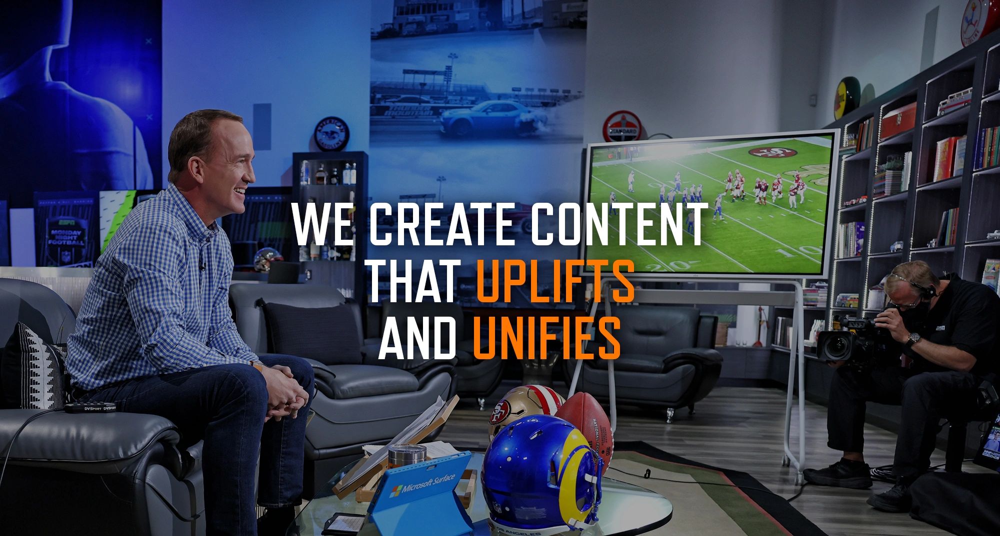 Omaha Productions COMING SOON SONY Pictures (Ghostbusters) Peyton and Eli arm themselves with the one tried and true weapon to protect themselves against Garraka's infamous Death Chill - Quarter Zips. Ghostbusters: Frozen Empire is exclusively in movie theaters March 22. Get tickets now. Buy Tickets PROJECTS ManningCast Bud Light "Peyton It Forward" Bud Light "Peyton It Forward" ESPN and Omaha Productions’ wildly popular Monday Night Football with Peyton and Eli – with quarter-zip sweaters and brotherly banter – brings fans witty commentary, stellar guests, and top-notch analysis. MORE manningcast Bud Light "Peyton It Forward" Bud Light "Peyton It Forward" Bud Light "Peyton It Forward" Bud Light held one of the largest Super Bowl ticket giveaways ever and all the NFL stars were in on the action, but whose name best fit the bill? Players like George Kittle, Emmitt Smith, and Austin Ekeler made a strong bid for the title, but in this instance, Saquan just migh...