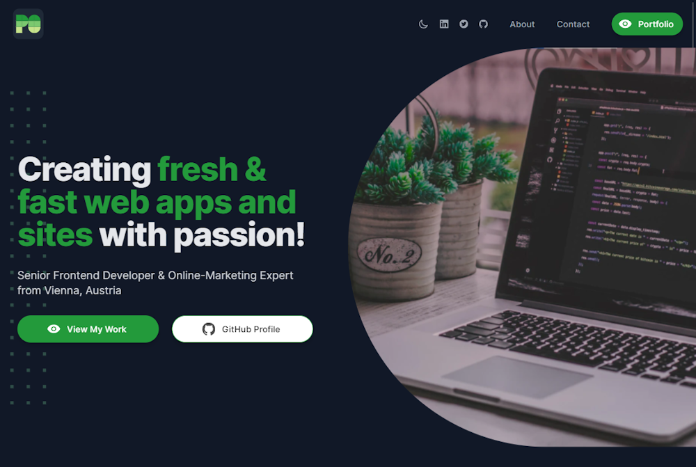 Senior Frontend Developer | Patrick Obermeier Skip to content Patrick Obermeier Open menu Toggle dark mode LinkedIn Twitter GitHub About Blog Portfolio Contact Creating fresh & fast web apps and sites with passion! Senior Frontend Developer & Online-Marketing Expert from Vienna, Austria View My Work Get In Touch About Me I'm an experienced front-end developer with a solid background in everything related to online-marketing on top. It is my passion to build slick & well optimized websites and web apps. I’m very much into gaming and learning to work with new technologies, always improving myself to stay on top of my field. Further, I like nature and enjoy doing some trekking from time to time. Finally, I'm a good person to have a beer with. View My Work View Resume Tools & Technologies I Use HTML CSS Sass JavaScript (ES6+) TypeScript Node.js React Redux GraphQL Next.js Bootstrap Bulma Webpack Gulp Grunt C# PHP ...