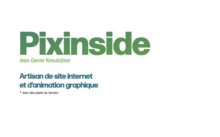 Pixinside - Accueil Pixinside web motion air à propos références contact Pixels Élevés en Liberté Conception Web Suisse Sans Conformité Jean-Daniel Kneubühler * avec des pixels du terroirs Web Du design aux fonctionnalités sur mesure Notre niveau d’implication dans votre projet dépendra directement de votre attente et, par conséquent, des exigences que vous fixerez pour satisfaire au mieux votre propre clientèle. Quel que soit le degré des compétences de vos intervenants, nous nous assurerons qu’ils maîtrisent toutes les fonctionnalités nécessaires au besoin d’autonomie que vous attendez. En d’autres termes, nous adapterons la formation des utilisateurs que vous nous désignerez en fonction de leurs besoins, jusqu’à assurer un support complet sur les outils qui vous seront confiés. en savoir plus références Conception Web Artisanale et Personnalisée Chaque site est sculpté avec soin pour...