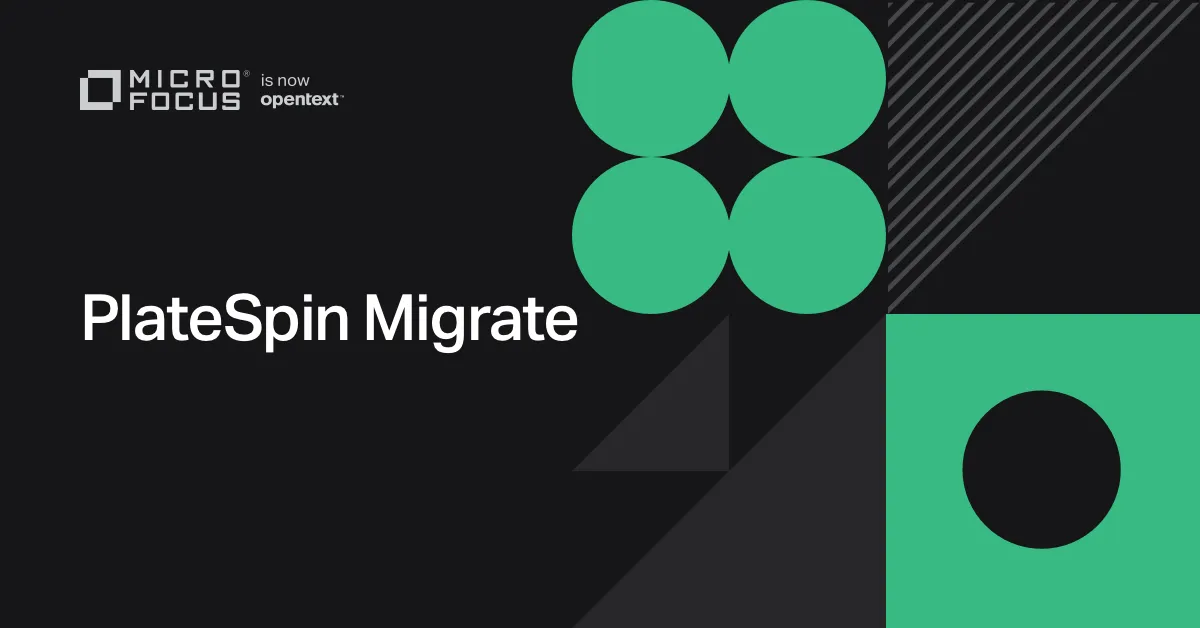 PlateSpin Migrate | OpenText Skip to Main Content Skip to Footer Your browser is not supported For the best experience, use Google Chrome or Mozilla Firefox . AI Data Analytics & Governance Products Unstructured Data Analytics (IDOL) IDOL Insight Engine & Intelligent Search Tools AI Image Analytics Law Enforcement Media Analysis AI Digital Assistant Brand Reputation Monitoring and Protection Surveillance Analytics Unified Endpoint Management ZENworks Endpoint Security Management Endpoint Backup Hybrid Workspaces ZENworks Service Desk Email and Social Collaboration GroupWise Filr (File Sync and Share) Enterprise Messaging Data Backup and Resiliency Data Protector Data Protector for Cloud Workloads Content Management Content Manager Content Manager Cloud Free trials View all products › Support & Services...