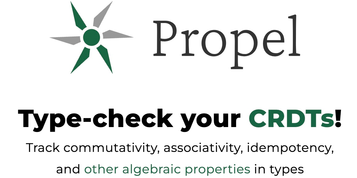 Propel Example CRDTs Properties Getting Started Publications GitHub Programming Group Type-check algebraic laws! Track commutativity, associativity, idempotency, and other algebraic properties in types Propel is a programming language developed in the Programming Group at the University of St. Gallen . It allows developers to annotate functions with algebraic properties such as commutativity, associativity, and idempotency. Propel’s type system uses a specialized automated inductive theorem prover to reason about these properties. Try Propel We compiled Propel to JavaScript using Scala.js for you to try the latest version locally in your browser. Definitions (def [ ] ) Introduces a definition that is bound to in the rest of the program. Recursive definitions must designate their type. Non-recursive definitions leave out the type declaration. (type ) In...