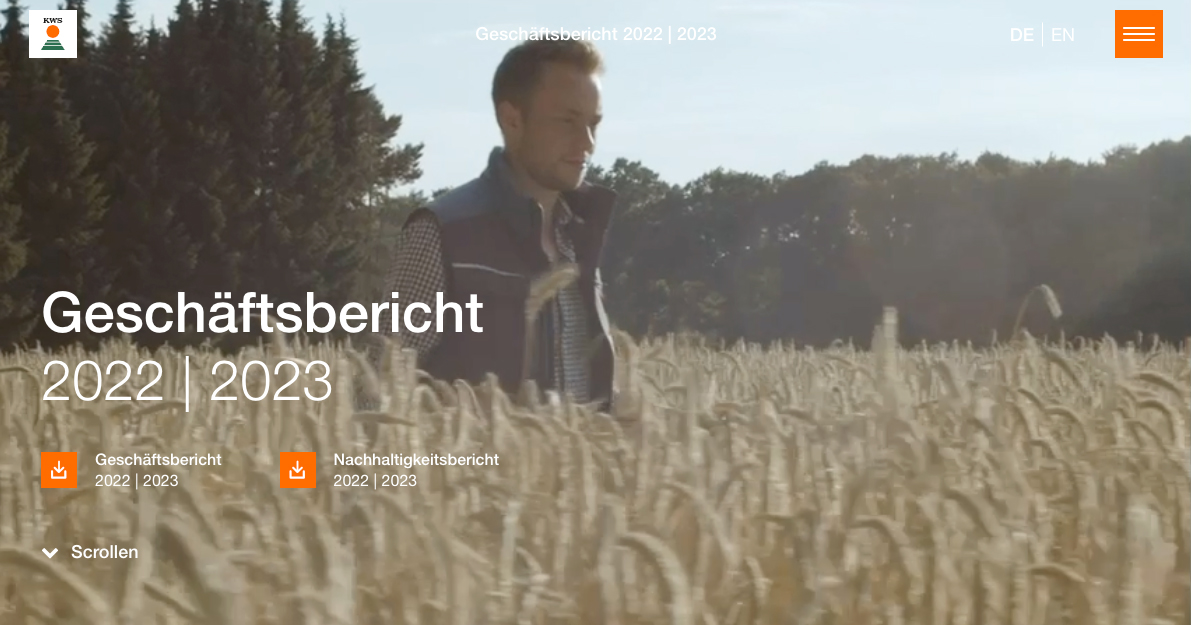 KWS SAAT SE & Co. KGaA Geschäftsbericht 2022 | 2023 zum Inhalt springen Geschäftsbericht 2022 | 2023 DE EN Menu Geschäftsjahr 2022 | 2023 An unsere Aktionäre Über KWS Nachhaltigkeit Innovation Geschäftsbericht 2022 | 2023 Geschäftsbericht 2022 | 2023 Nachhaltigkeitsbericht 2022 | 2023 Scrollen Unsere Vision Seeding the Future for Generations Über KWS Zukunft säen – seit 1856 Mehr erfahren An unsere Aktionäre „Unsere zentralen Werte wie Nähe, Verlässlichkeit, Weitblick und Unabhängigkeit leben wir nicht nur innerhalb des Unternehmens, sondern ebenso mit Landwirten, Geschäftspartnern und Aktionären.“ Dr. Felix Büchting, Sprecher des Vorstands Mehr erfahren „Der Aufsichtsrat dankt dem Vorstand und allen Mitarbeitern der KWS Gruppe für den engagierten Einsatz und die erfolgreiche Weiterentwicklung der KWS.“ Philip Freiherr von dem Bussche, Vorsitzender des Aufsichtrats Mehr erfahren Nachhaltigkeit Scope-1- und Scope-2-Emissionen ...