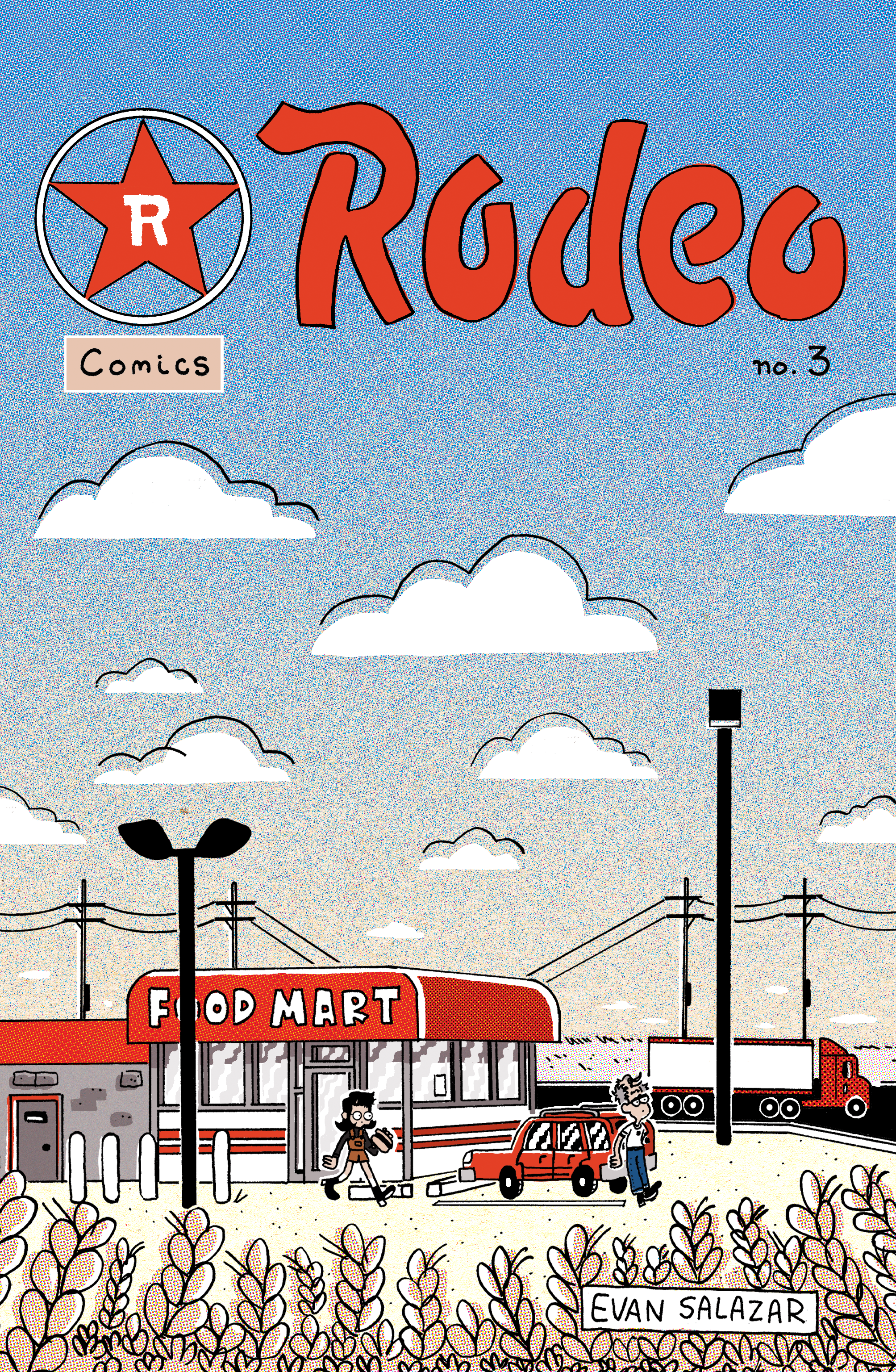Rodeo Comics | Evan Salazar Skip to content Rodeo Comics | Evan Salazar Menu + × expanded collapsed Menu Press Publications Gallery “On Writing Comics” Comix Club Other Projects Blog Links Store Patreon Instagram About & Contact home Rodeo Comics are available from Online The Rodeo Comics Webstore Wig Shop Web Shop Domino Books Your Local Comic Shop Wooden Tooth Records (Tucson) The Copacetic Comics Co. (Pittsburgh) Desert Island Comics (Brooklyn) Floating World Comics (Portland) Gutter Pop Comics (Buffalo) Quimby’s Bookstore (Chicago) Partners and Son (Philadelphia) Atomic Books (Baltimore) Howling Pages (Chicago) Silver Sprocket (San Francisco) Cartoon Crossroads Columbus’ Emerging Talent Award Winner 2023 Featured on The Comics Journal’s list of Best Comics 2023 Massachusetts Independent Comics Expo Grant Awardee 2020 Bubbles’ #5 Best Comics of the Year 2020 “ The future of comics is in good ...