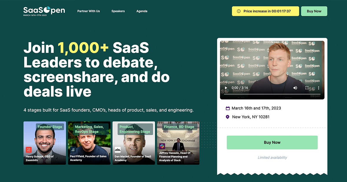 Join 1,000+ SaaS Leaders, Get an Inside Look at the Future of Software. 4 stages built for SaaS founders, CMO's, heads of product, sales, and engineering.