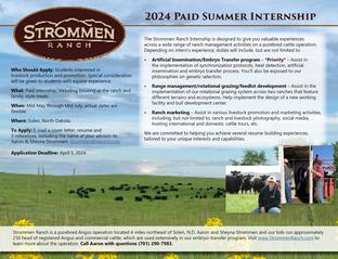 Strommen Ranch Strommen Ranch About Sires Females Commercial Female List Bull Sale Photos/Videos Contact Design Strommen Ranch is a registered ANGUS seedstock operation four miles northeast of Solen, N.D. It is owned and operated by Aaron & Sheyna Strommen and our kids, Cassidy, Cooper & Clint. As your seedstock provider, we want your operation to be profitable and sustainable for generations – regardless of the market. That is why we require our stock to exhibit Maternal POWER™ by thriving in a Northern Plains, grass-based environment with minimal supplementation. They must do more with less. Our commitment to these ideals has never weakened. We believe that, now and into the future, profitable and sustainable operations will run cowherds that provide the desired performance with minimal input. We have placed extensive pressure on our cowherd to generate the right genetics that will positively impact our customers’ bottomline: cattle that can do mor...