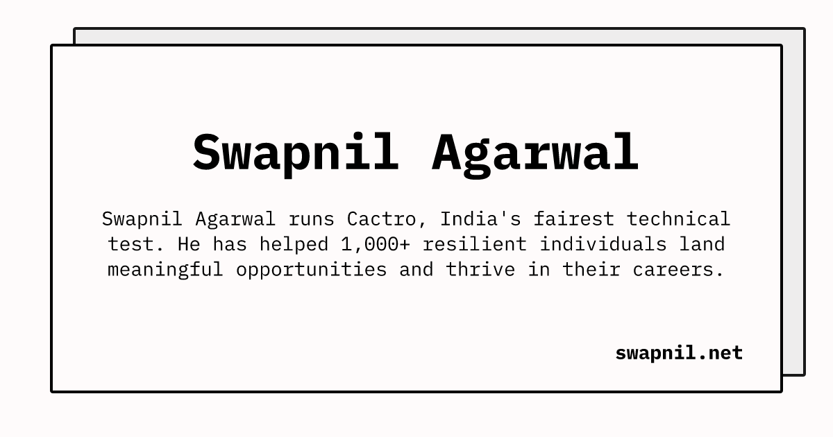Founder, Developer, Writer, and Lifelong Learner. Swapnil is on a mission to fix tech hiring. He has worked as an SDE at Amazon and as a PM at Meesho.