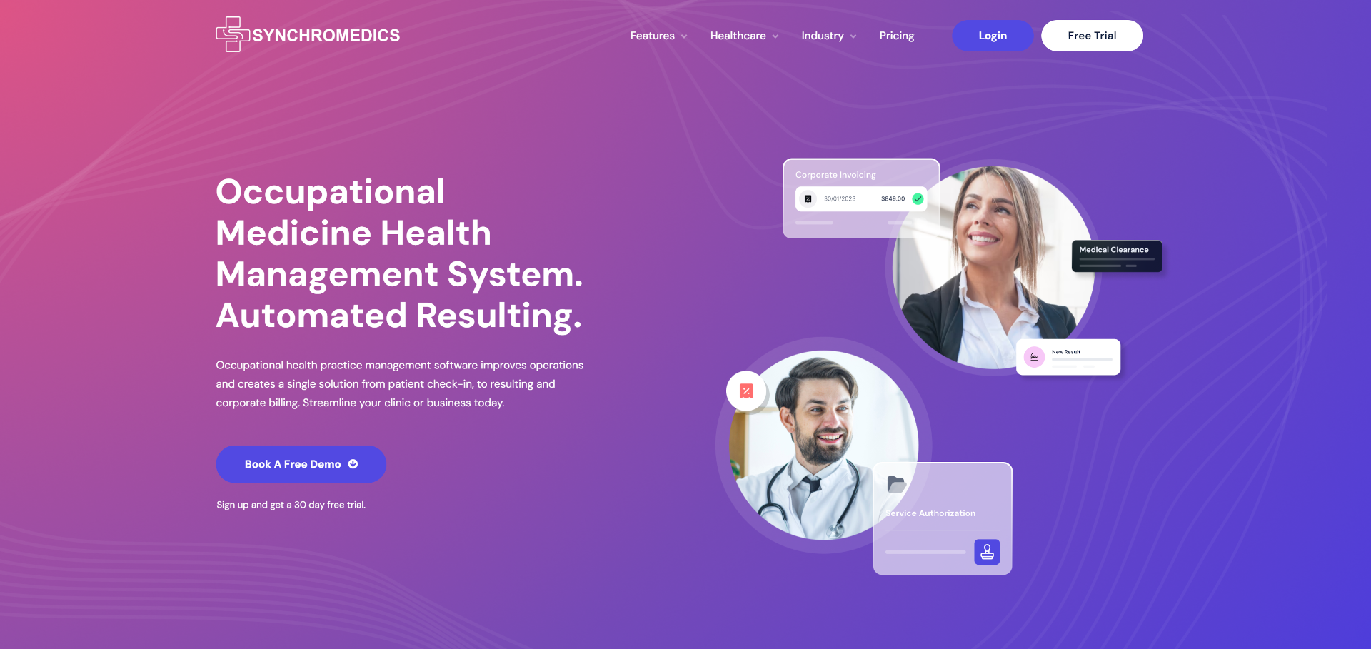 Synchromedics is a modern occupational health software that streamlines operations and creates a single solution for authorizations, resulting and invoicing.