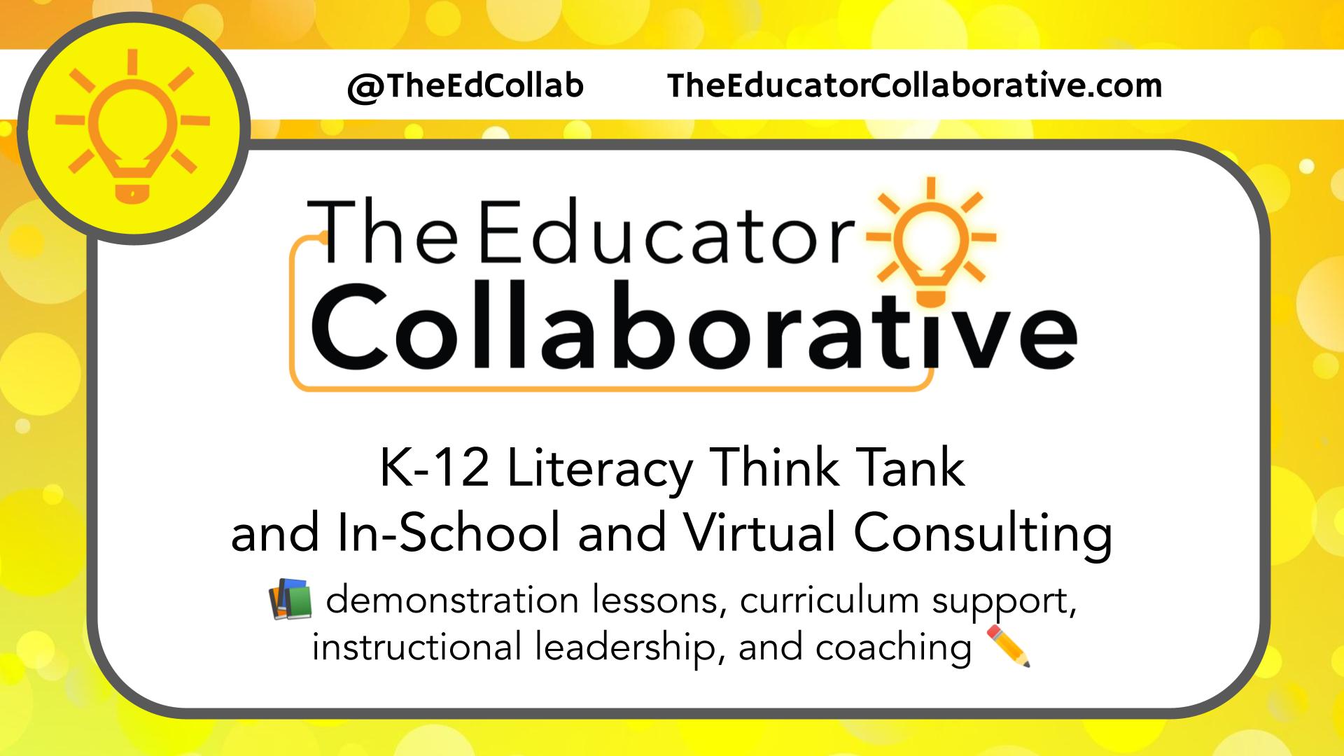K-12 Reading and Writing PD - The Educator Collaborative Skip to content The Educator Collaborative Home Consulting Downloadables Blog Contact Us The Educator Collaborative Main Menu Additional Terms and Conditions for CTLE Hours Accrual Ask a Book Ambassador Associate Member Menu Toggle End of Term Reflection Blog Curator RFP Celebrate Teachers Connect Digital Badges Employee Environmental Policy Form Menu Toggle In-School Consulting Partnership Get to Know Our Current Members GKP catch up ADMIN Global Kind Project Menu Toggle Global Kind Project Celebration! Global Kind Project Guide place holder guide Home Home On-the-Go Internal Use Menu Toggle Send evals Job Opportunities Menu Toggle Hiring: Part-Time Administrative Assistant Reference K-12 Literacy Consulting Menu Toggle Remote Learning Support K-12 Literacy Resources Keynote and Speaking Services Lockoutregistered-v213998 NC...