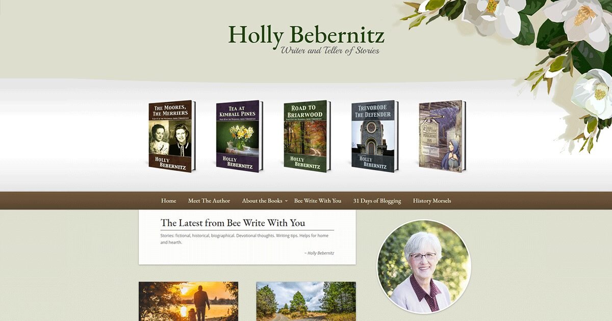 Holly Bebernitz – Writer and Teller of Stories Holly Bebernitz Writer and Teller of Stories Home Meet The Author About the Books Trevorode the Defender Road to Briarwood Tea at Kimball Pines The Moores, the Merriers Lawson Payne Aylesbury Dreams Tales of the Peregrine Inn: Olivia’s Escape Bee Write With You 31 Days of Blogging History Morsels The Latest from Bee Write With You Stories: fictional, historical, biographical. Devotional thoughts. Writing tips. Helps for home and hearth. ~ Holly Bebernitz Timelines June 9, 2025 | Though You Fall Since I committed to pen this account of my fall and rise, I have a new appreciation for authors who summon the nerve to pen memoirs or autobiographies.... Read More While Daring Greatly May 20, 2025 | General , Though You Fall The credit belongs to the man who strives valiantly… who errs and comes up short again and again … who, at the best, knows, in the end, the triumph of high... Read More...
