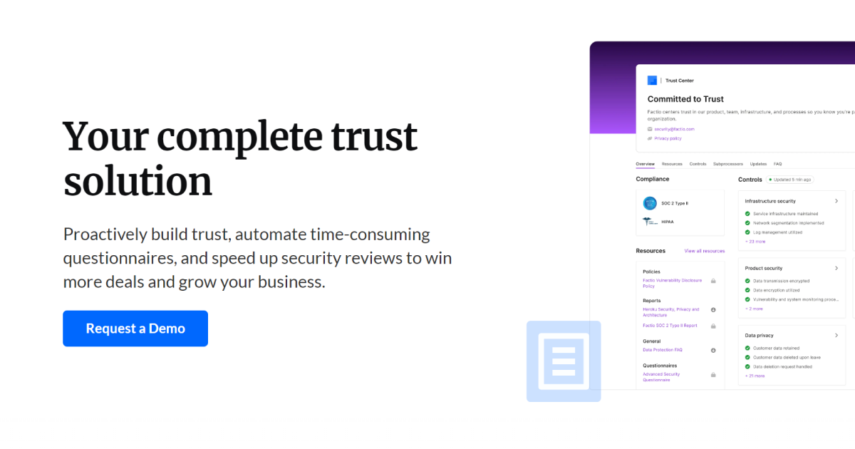 Proactively build trust, automate time-consuming questionnaires, and speed up security reviews to win more deals and grow your brand.