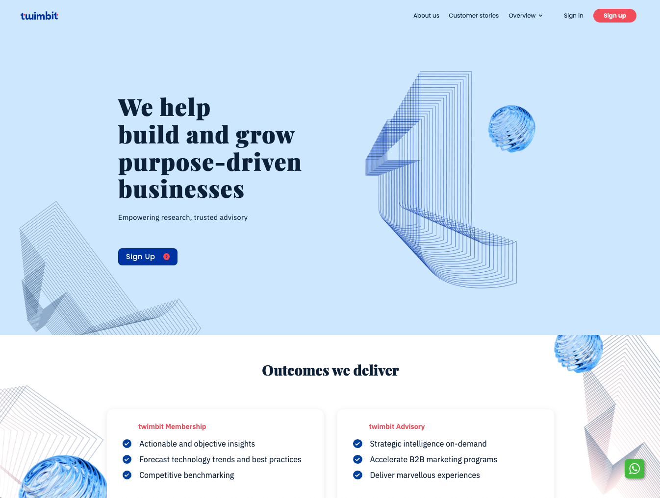 Twimbit | be more Product twimbit membership twimbit vault Assembly by twimbit eXPERTISE Experience innovation B2B Marketing Accelerator Strategic Intelligence Customer stories Blogs Assembly About Company Newsroom Our Team Careers Contact us Pricing Sign in Sign up Feed Customer Stories Blogs Assembly Pricing About us Company Newsroom Our Team Careers Contact us sign in Sign Up Feed We help build and grow purpose-driven businesses Empowering research, trusted advisory Sign up Outcomes we deliver Twimbit Membership Actionable and objective insights Forecast technology trends and best practices Competitive benchmarking More Twimbit Advisory Strategic intelligence on-demand Accelerate B2B marketing programs Deliver marvellous experiences More Assembly by Twimbit Network and contribute in your communities of interest Ask and answer the most pressing industry questions Establish your influence ...