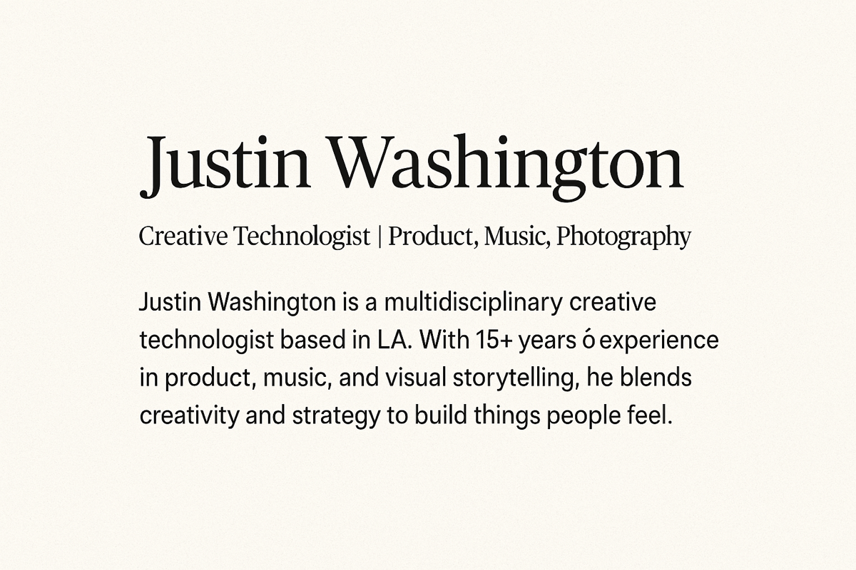 Justin Washington – Creative Technologist | Product, Music, Photography