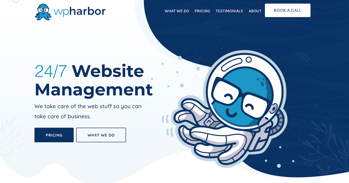 Web Experts | Web Hosting | WordPress Management WHAT WE DO PRICING TESTIMONIALS ABOUT Sign up! WHAT WE DO PRICING TESTIMONIALS ABOUT SIGN UP! WordPress Management We provide end-to-end website management for businesses. Pricing What We Do Trusted By Harbor Care Harbor Care goes beyond anything available on the market today, providing everything a small business owner needs for their website. Get a dedicated Web Manager, Premium Managed Hosting, over $1,300 in premium plugins included free, and more . Fully Managed Hosting Local Support Essential SEO Free Malware Removal 24/7 Support 2x Backups view all features Is Your Website Important To You? 24/7 Website Management Services Our US-based team of WordPress experts has been managing mission-critical websites for national brands and local businesses alike for over 10 years. About Us Do You Want Your Website to Shine? Get unlimited edits at a fixed monthly cost Ev...